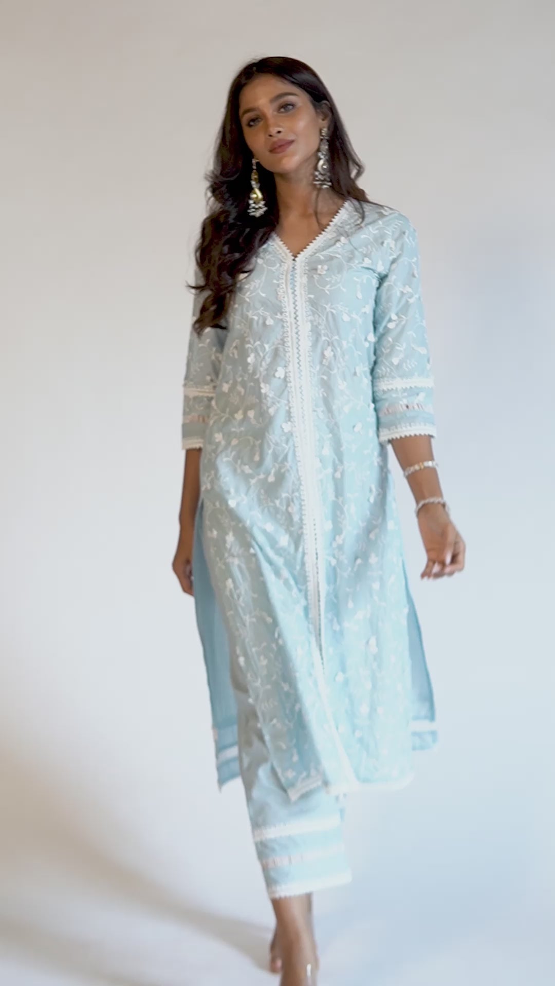Mulmul Cotton Cali Light Blue Kurta With Cali Light Blue Pant