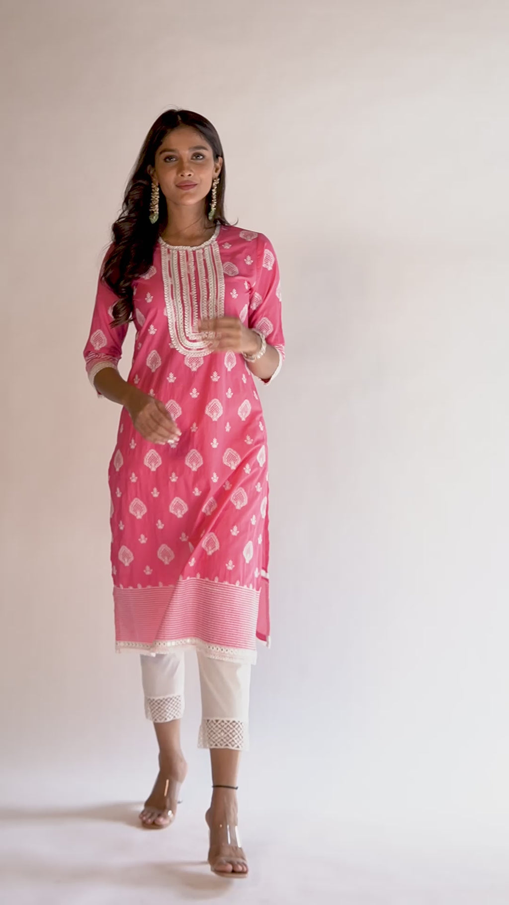 Mulmul Cotton Gargi Pink Printed Kurta With Mulmul Cotton Gargi Pink Pant