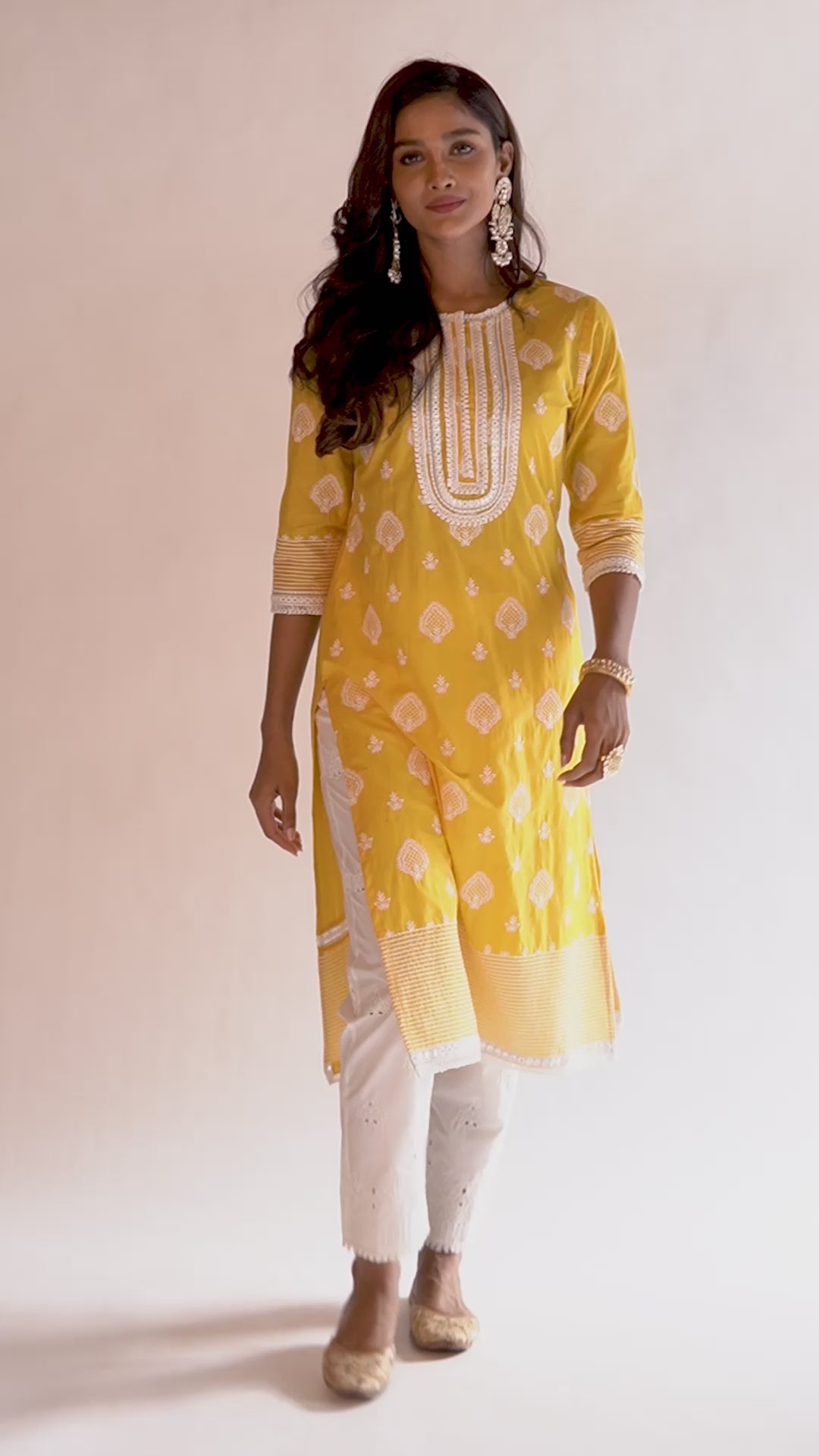 Mulmul Cotton Genia Yellow Kurta With Mulmul Cotton Genia Yellow Pant