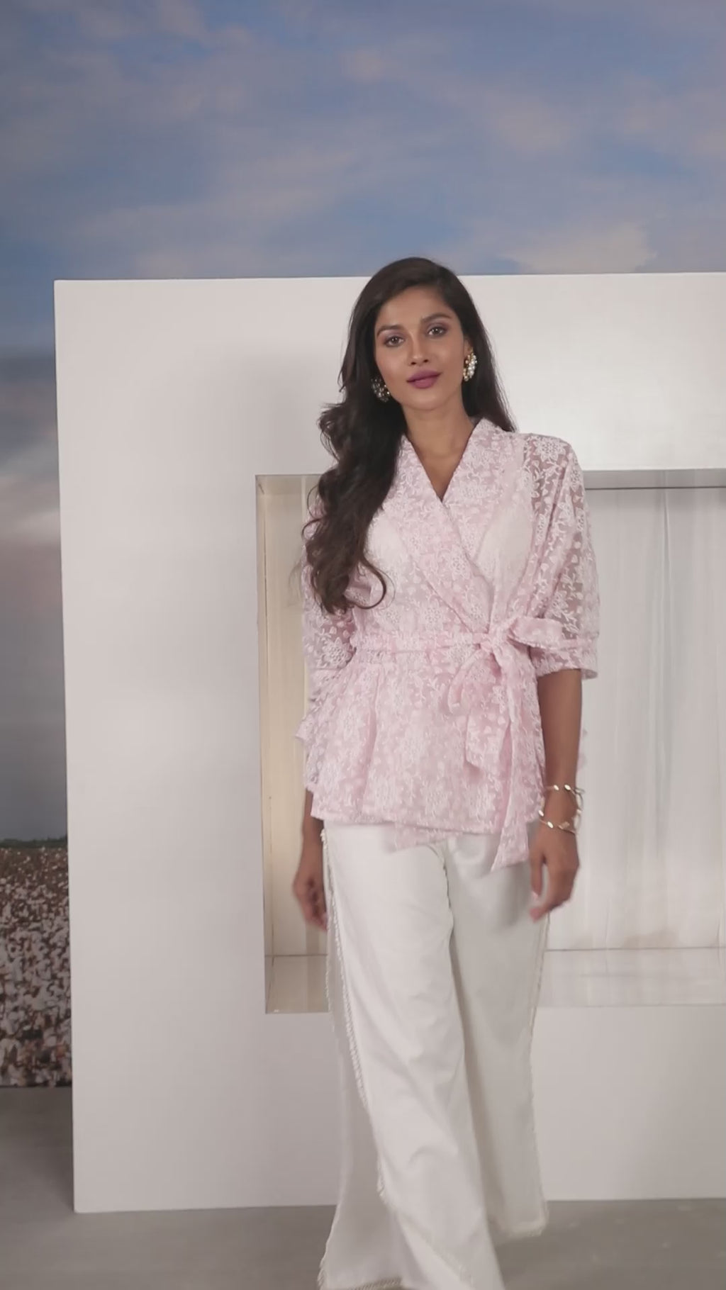 Mulmul Organza Cahya Pink Kurta With Mulmul Cotton Cahya Pink Pant
