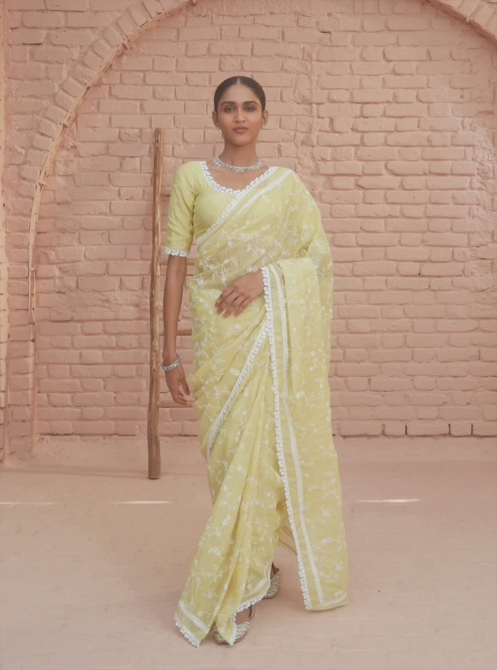 Mulmul Organza Romance Lime Saree