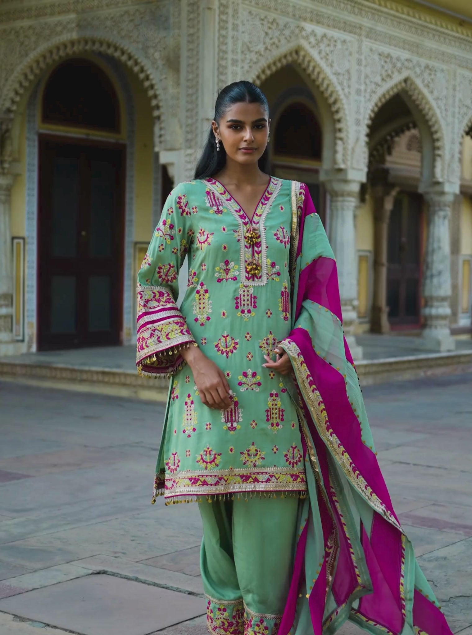 Mulmul Cotton Avira Pink Kurta with Mulmul Cotton Avira Pink Pant