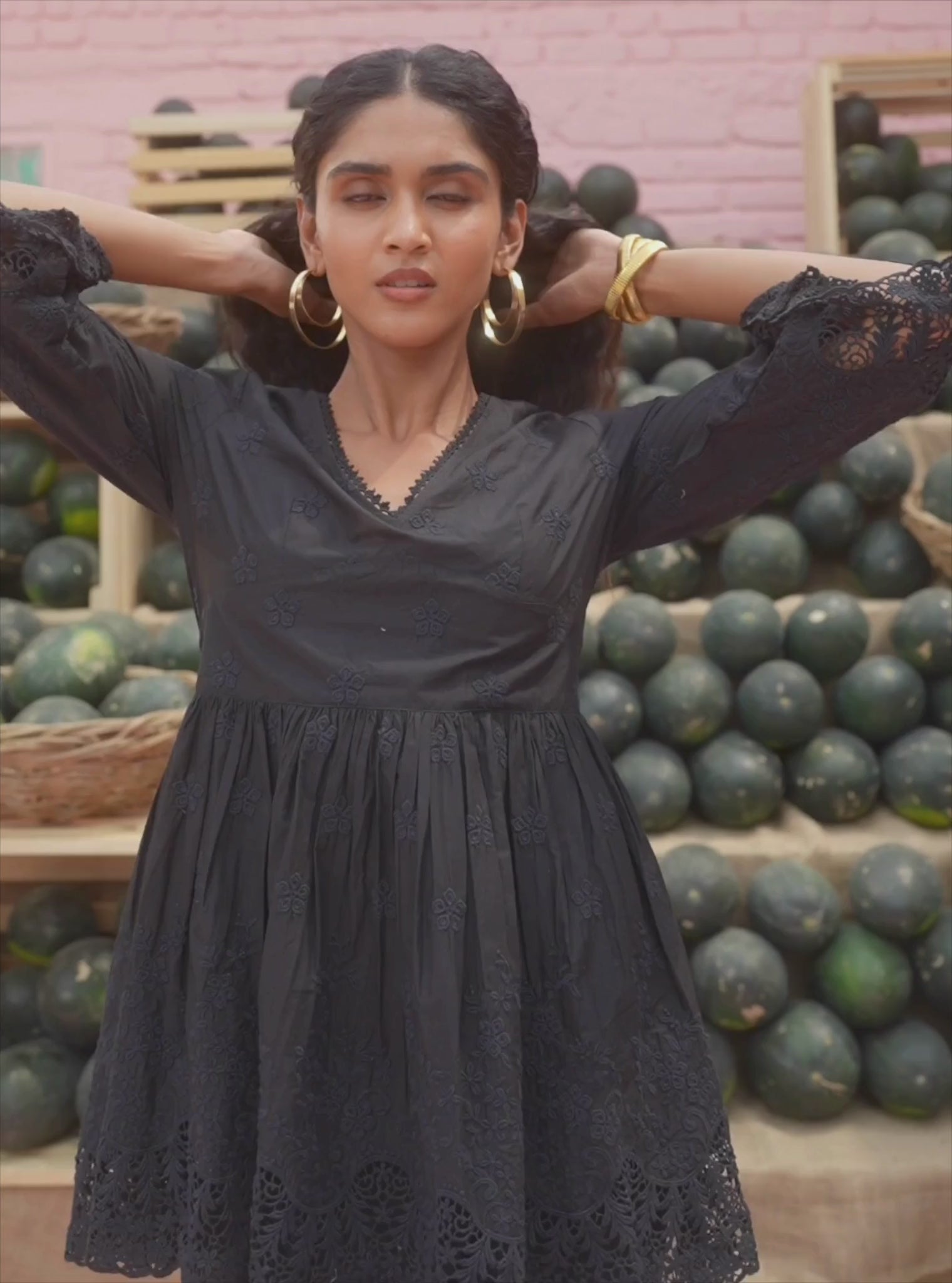 Laila Organza Printed Navy Cape Shrug With Skirt