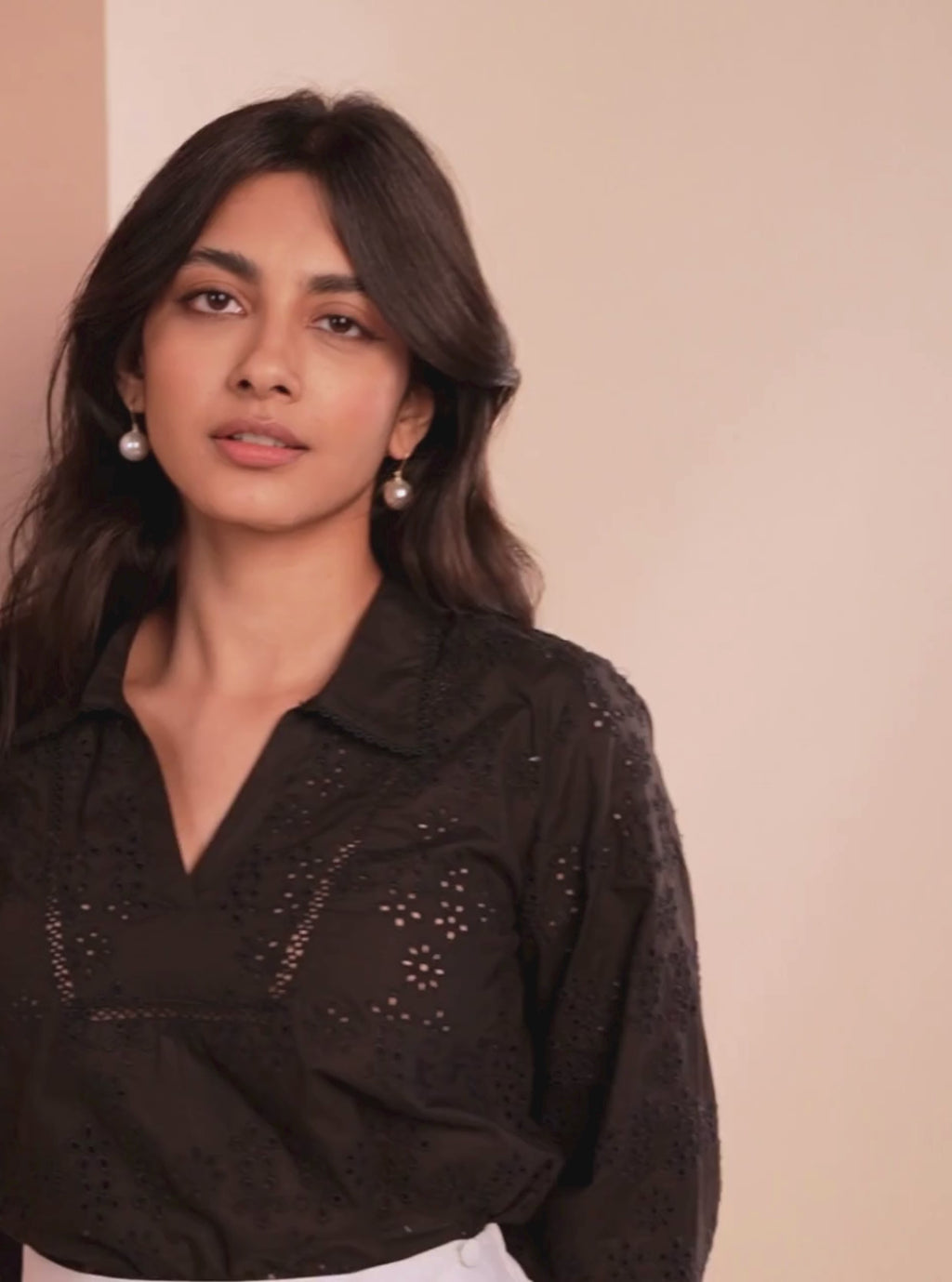 Mulmul Pima Daphne Black Top with Mulmul Pima Daphne Black Pant