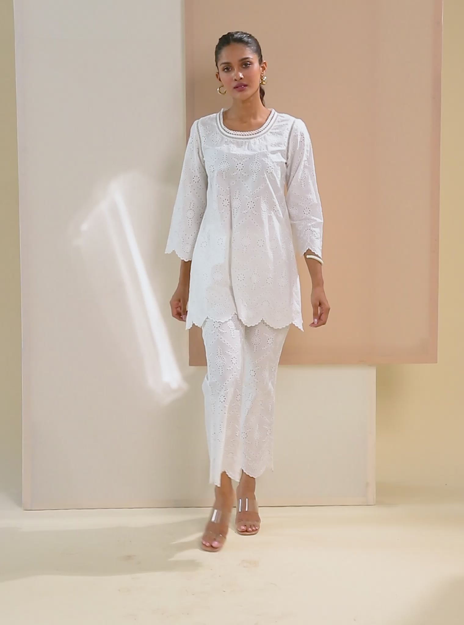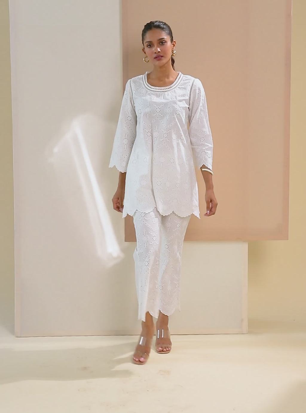 Mulmul Cotton CHLOE WHITE TOP With CHLOE WHITE PANT