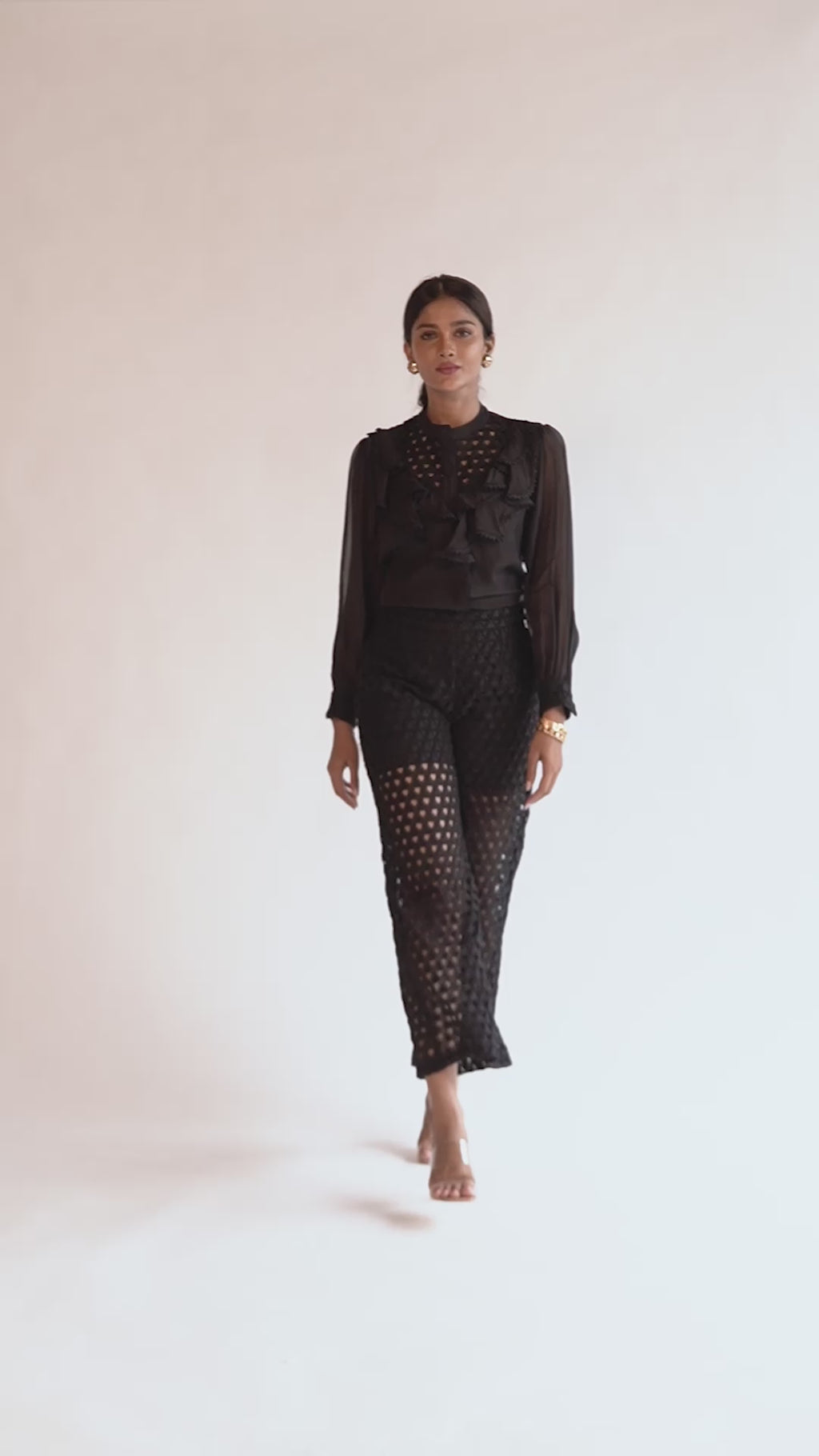 Mulmul Cupro Kynlee Black Top With Kynlee Black Pant