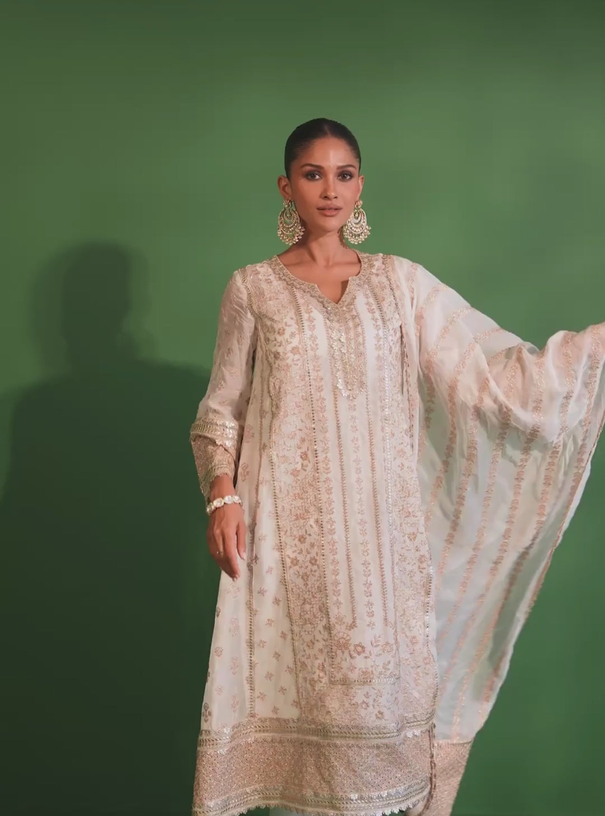 Gaatha Organza Off White Short Anarkali Kurta Set