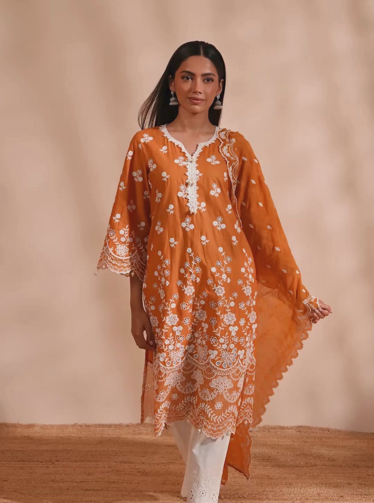 Nilan Supima Cotton Orange Anarkali Kurta Set