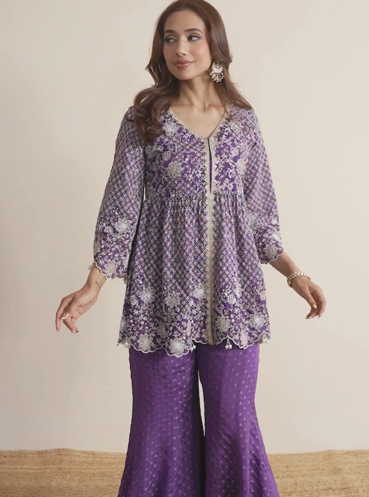 Janam Crepe Purple Kaftan With Pant
