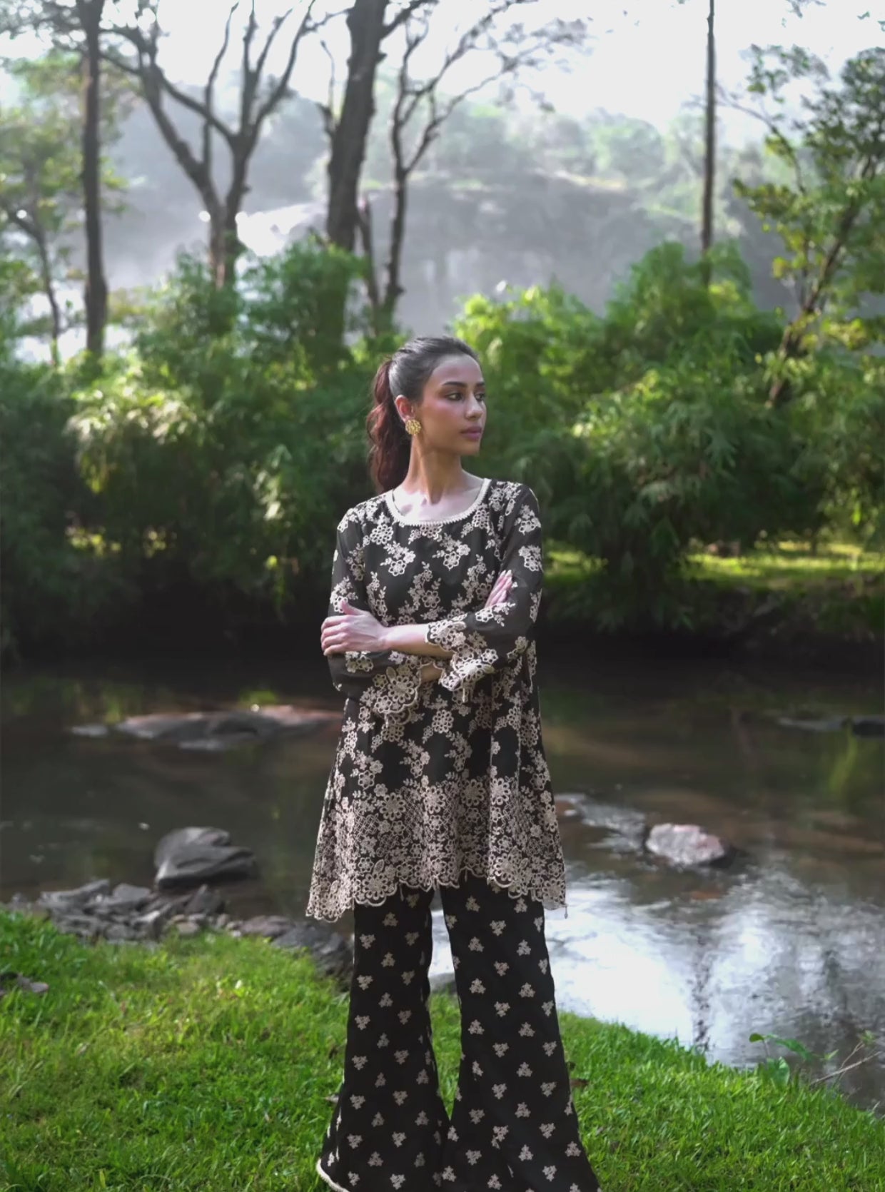 Milan Organza Black Top Set