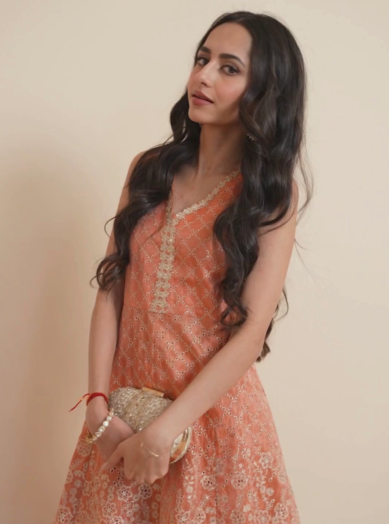 Araj Royal Tissue Burnt Orange Top Set