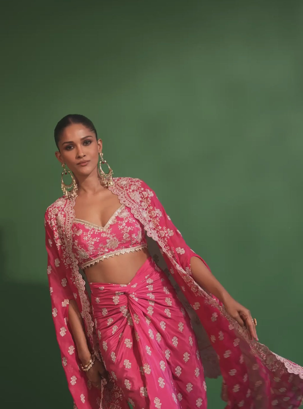 Maya Organza Fuschia Cape Shrug With Skirt