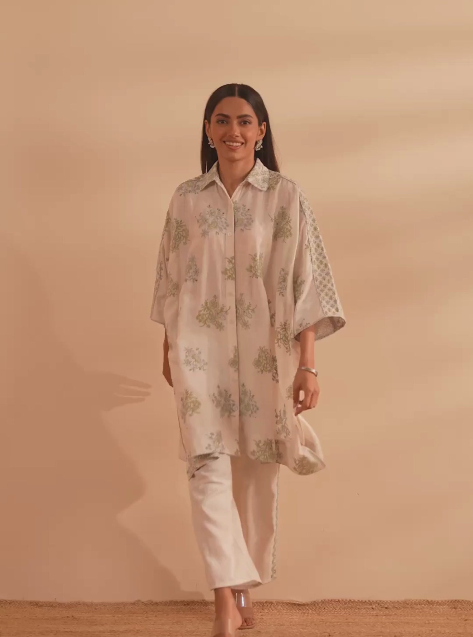 Hasi Cupro Satin Printed Off White Co-ord Set