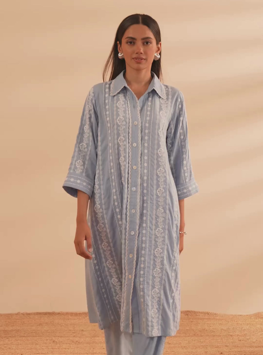 Iria Linen Light Blue Kurta Set