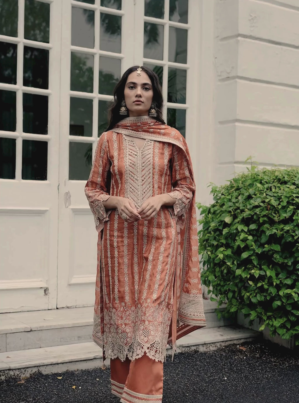 Arvini Cupro Satin Pink Anarkali Kurta Set