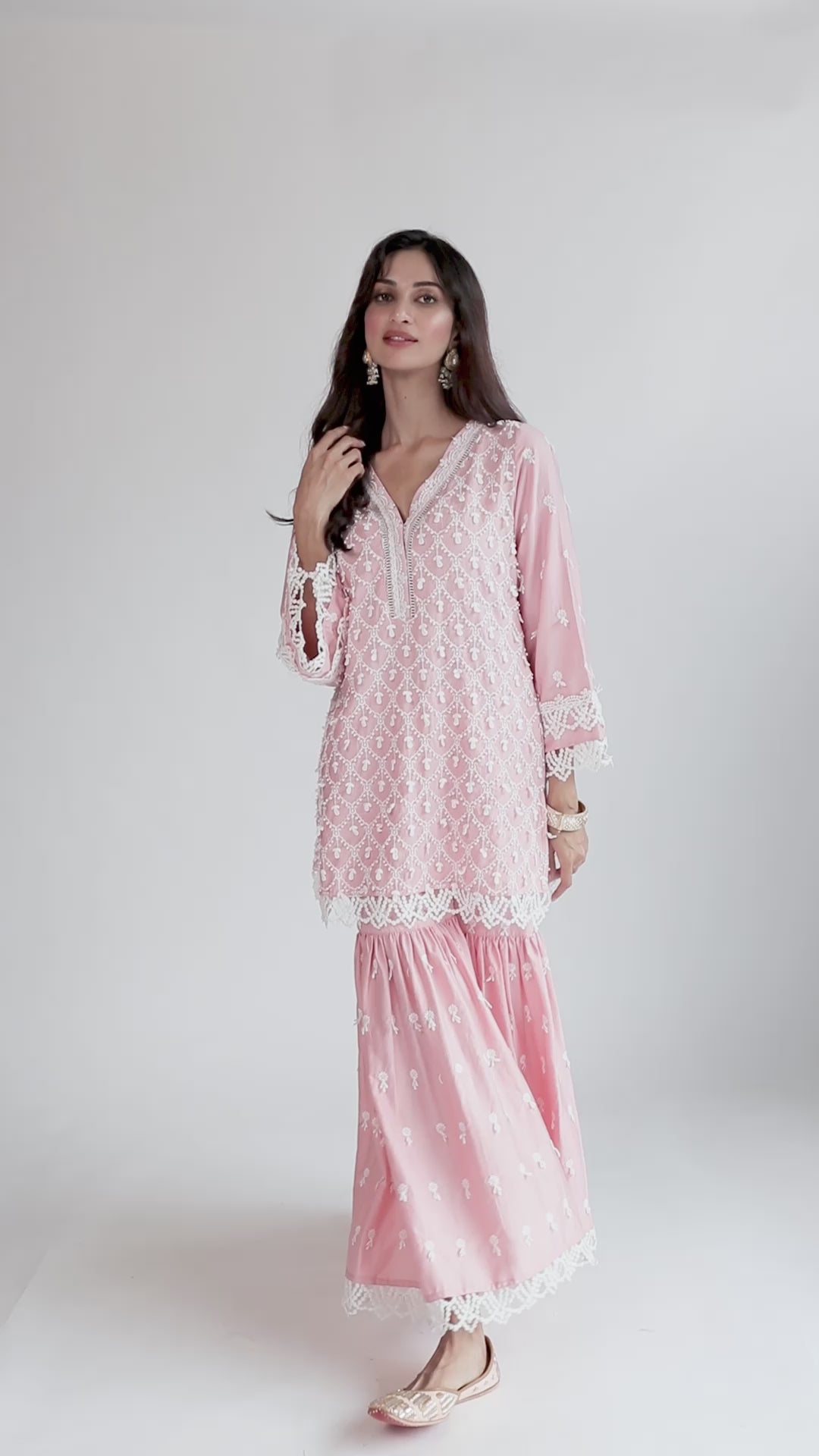 Mulmul Cotton Arlo Pink Kurta With Arlo Pink Garara