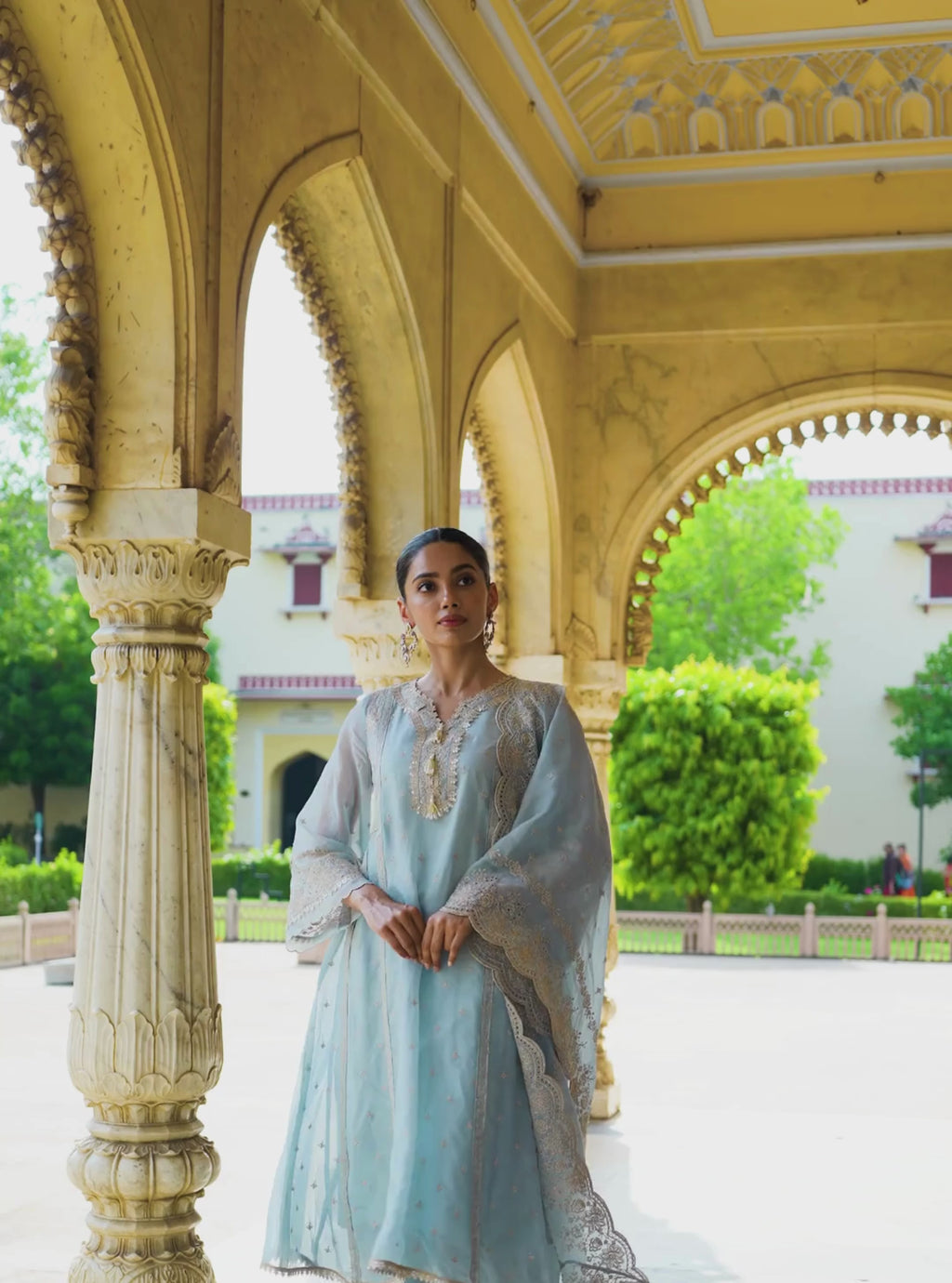 Paakhi Pima Satin Fuschia Jacket With Sharara