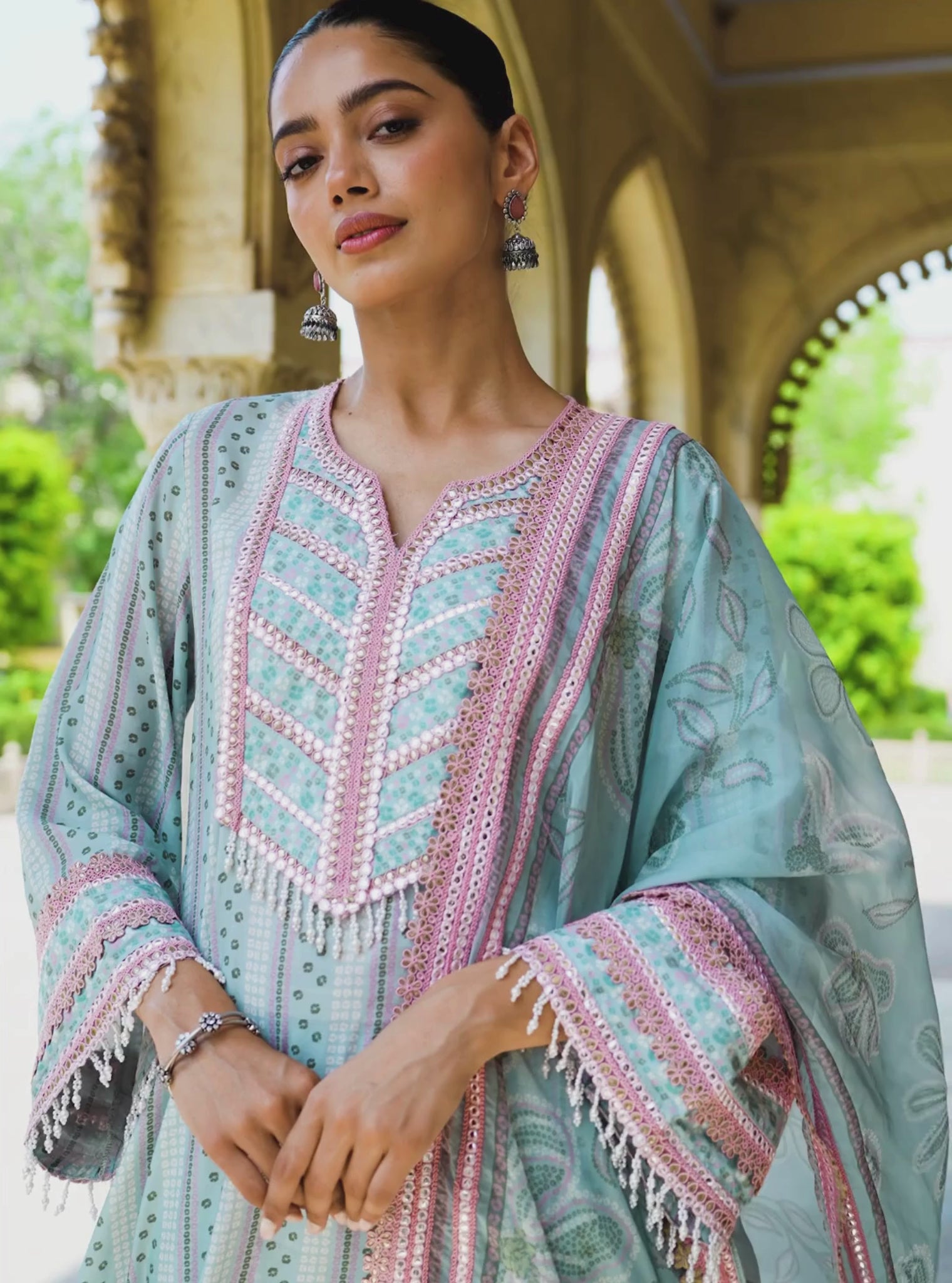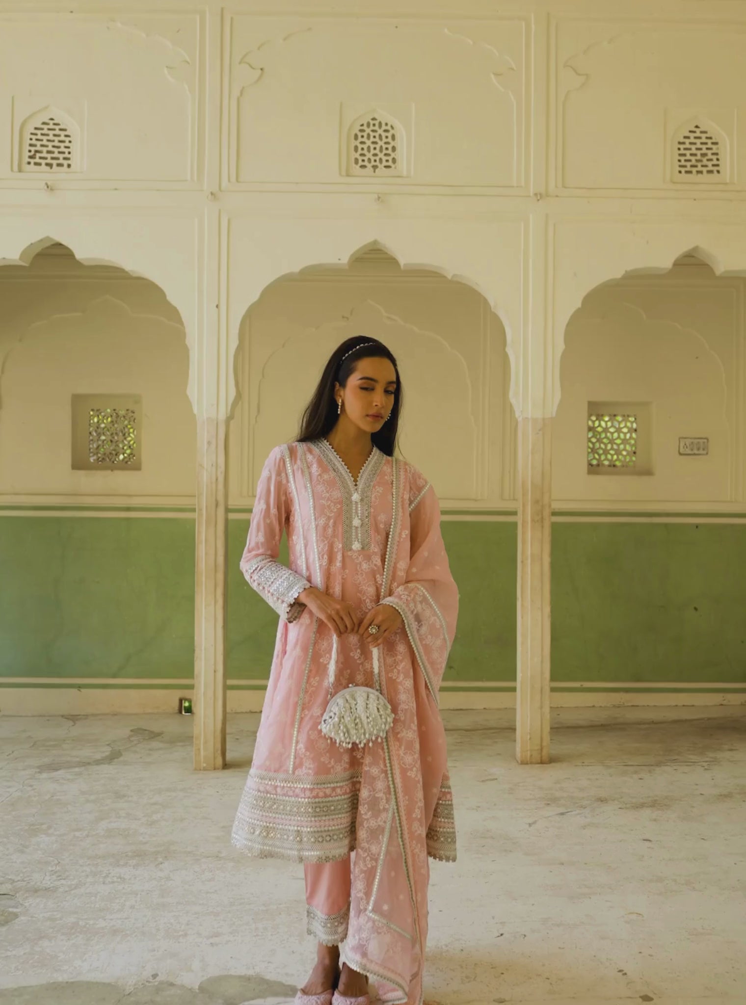 Mausami Pink Linen Satin Anarkali Kurta Set