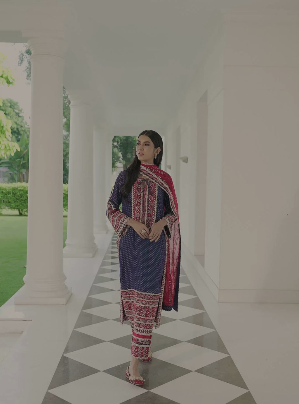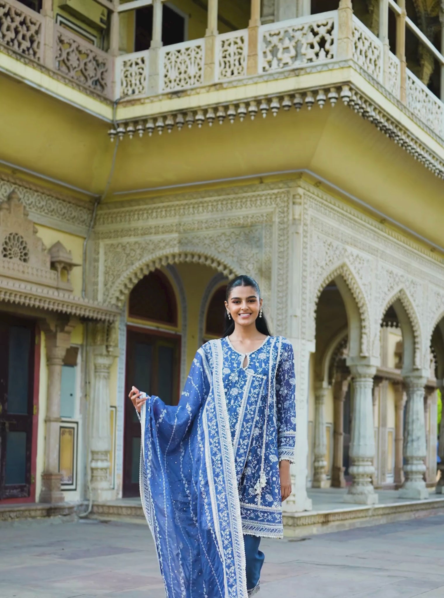 Mausami Navy Linen Satin Anarkali Kurta Set