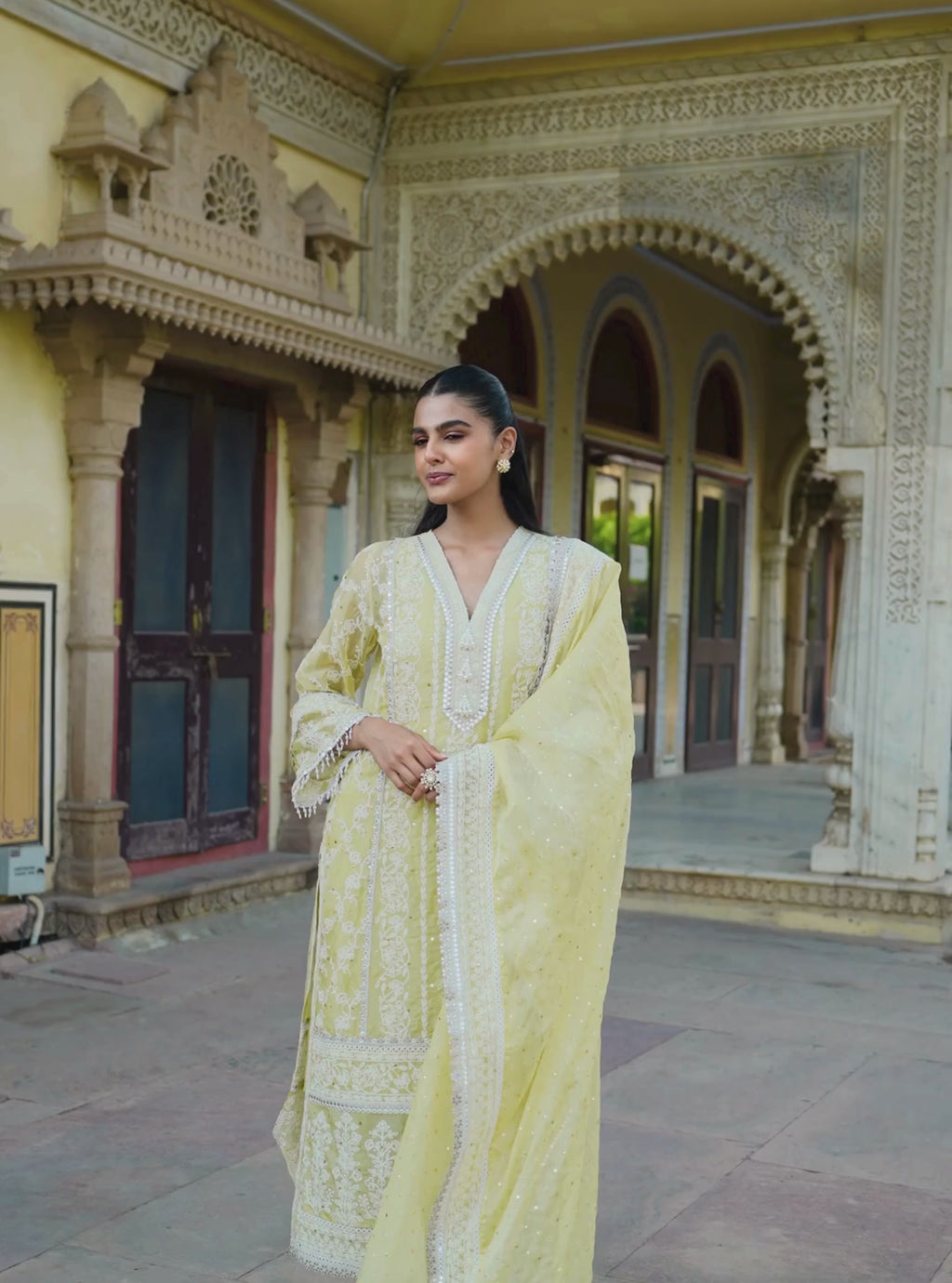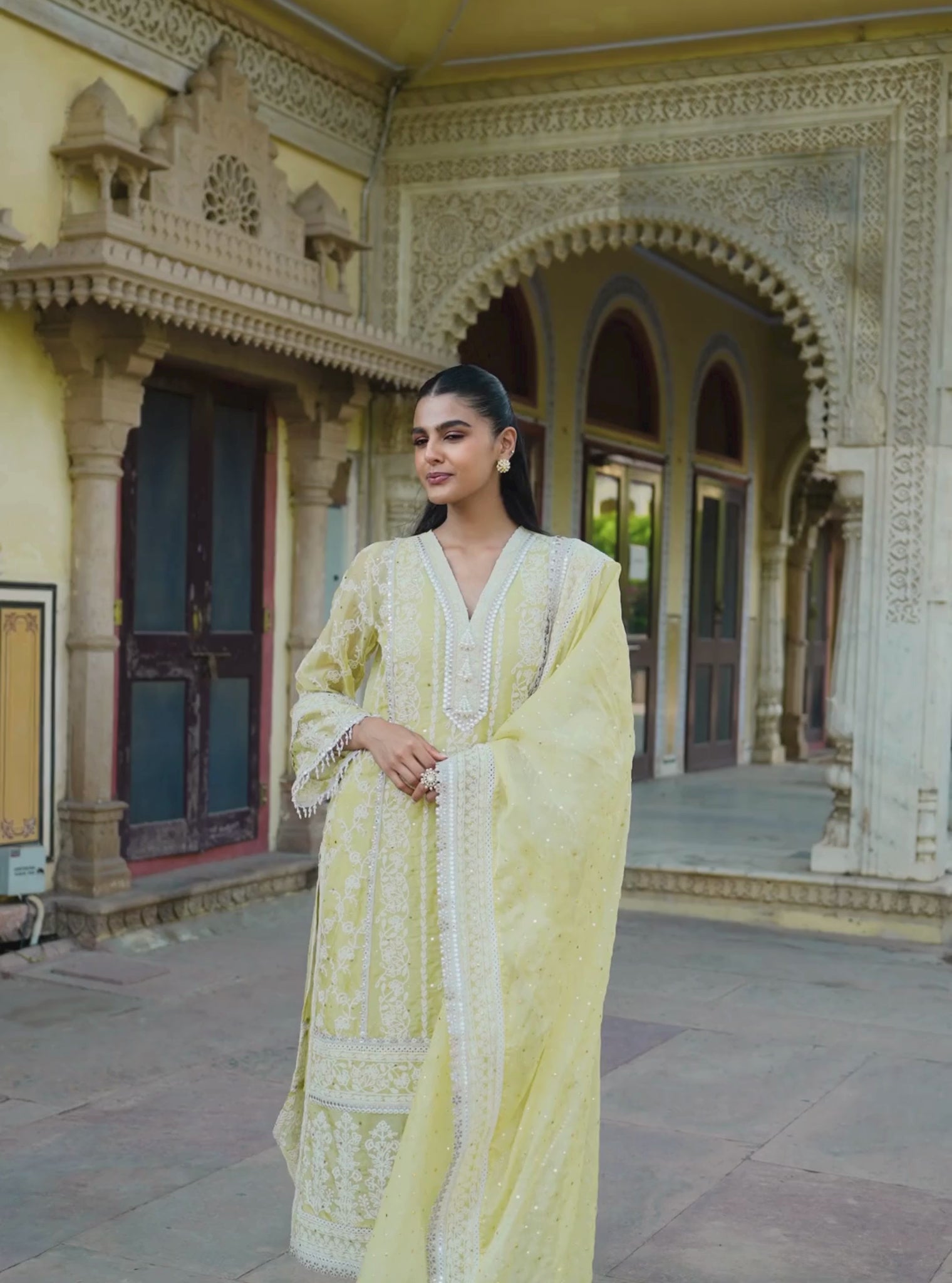 Mangal Banarsi Yellow Kurta With Pink Pant
