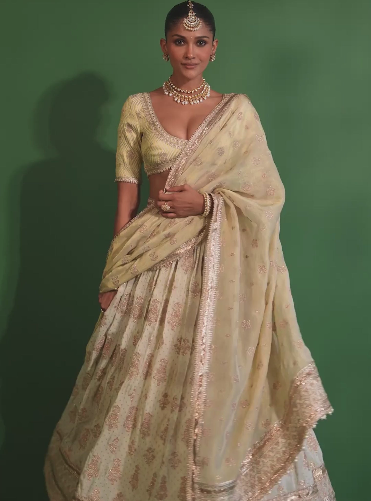 Mulmul Banarsi Dasheri Green Kurta With Mulmul Banarsi Dasheri Green Pant