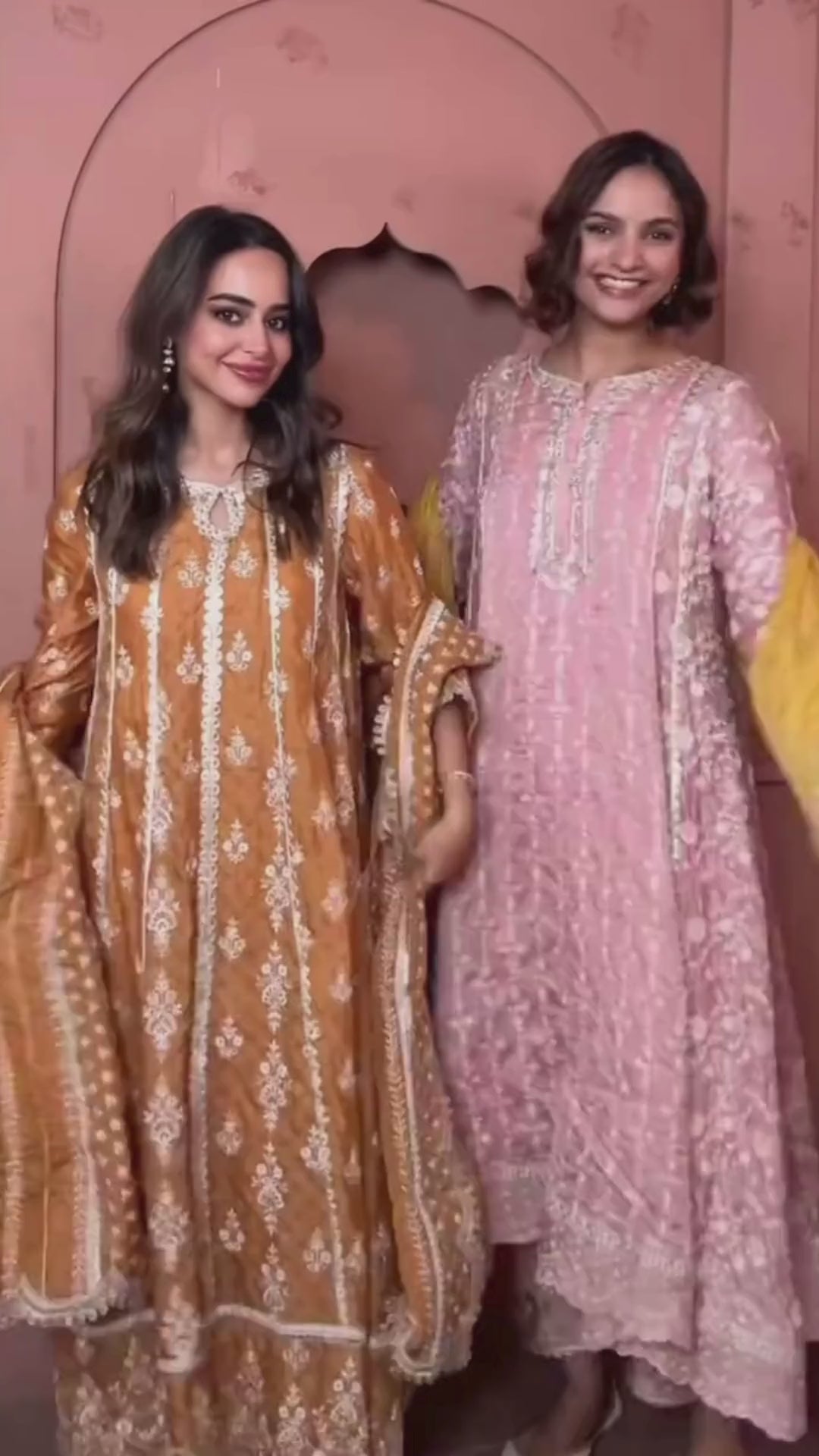 Mulmul Banarsi Gerua Pink Kurta with Mulmul Banarsi Gerua Pink Pant