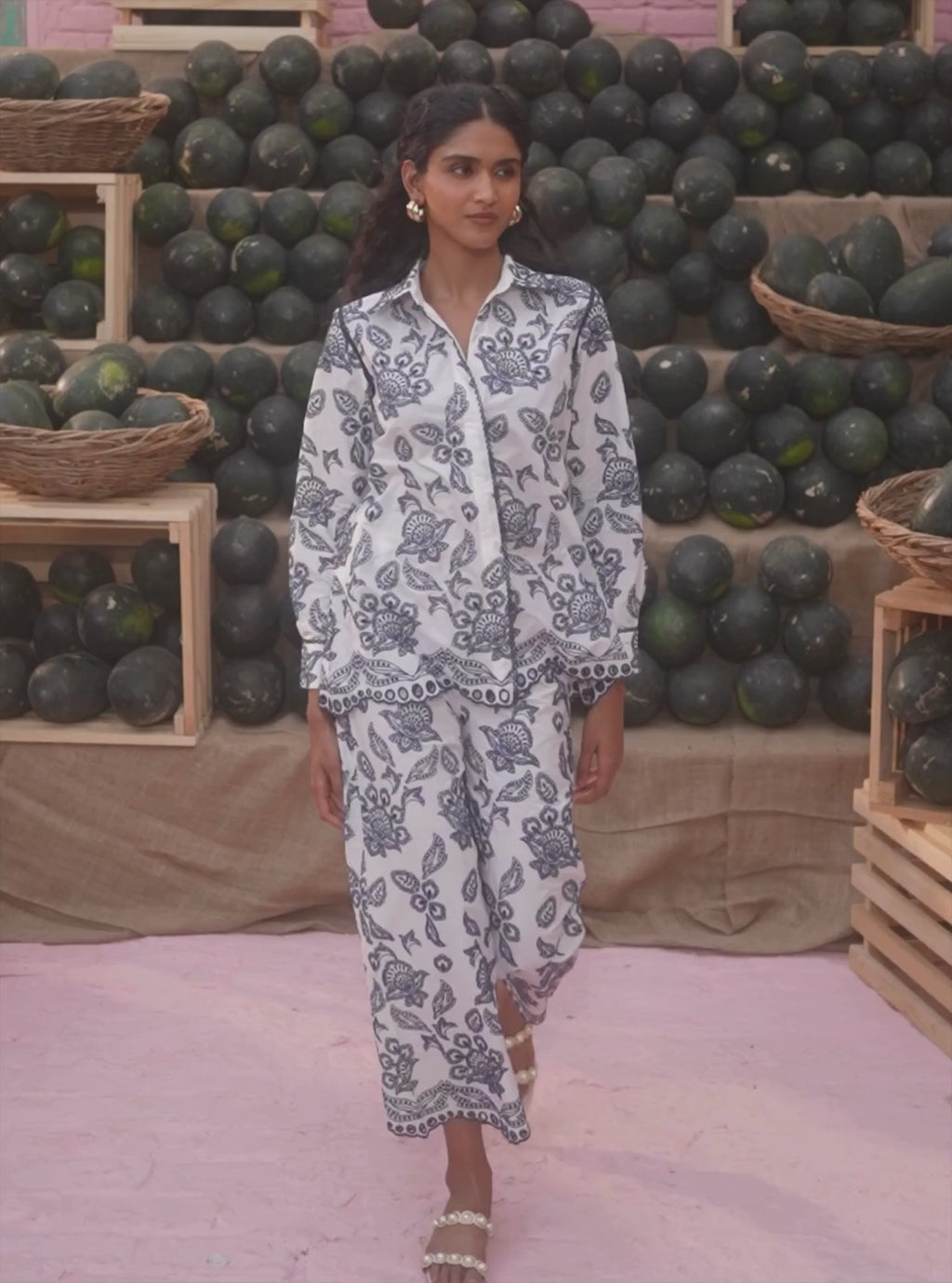 Mulmul Cotton Gauri Navy Kurta With Mulmul Cotton Kriya White Pant