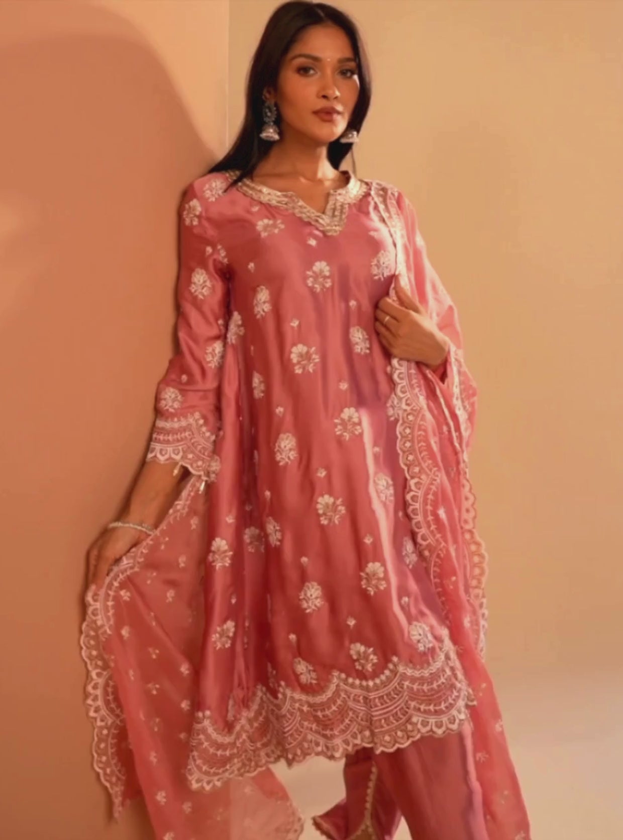 Mulmul Luxe Satin Mehar Mauve Kurta with Mulmul Luxe Satin Mehar Mauve Pant