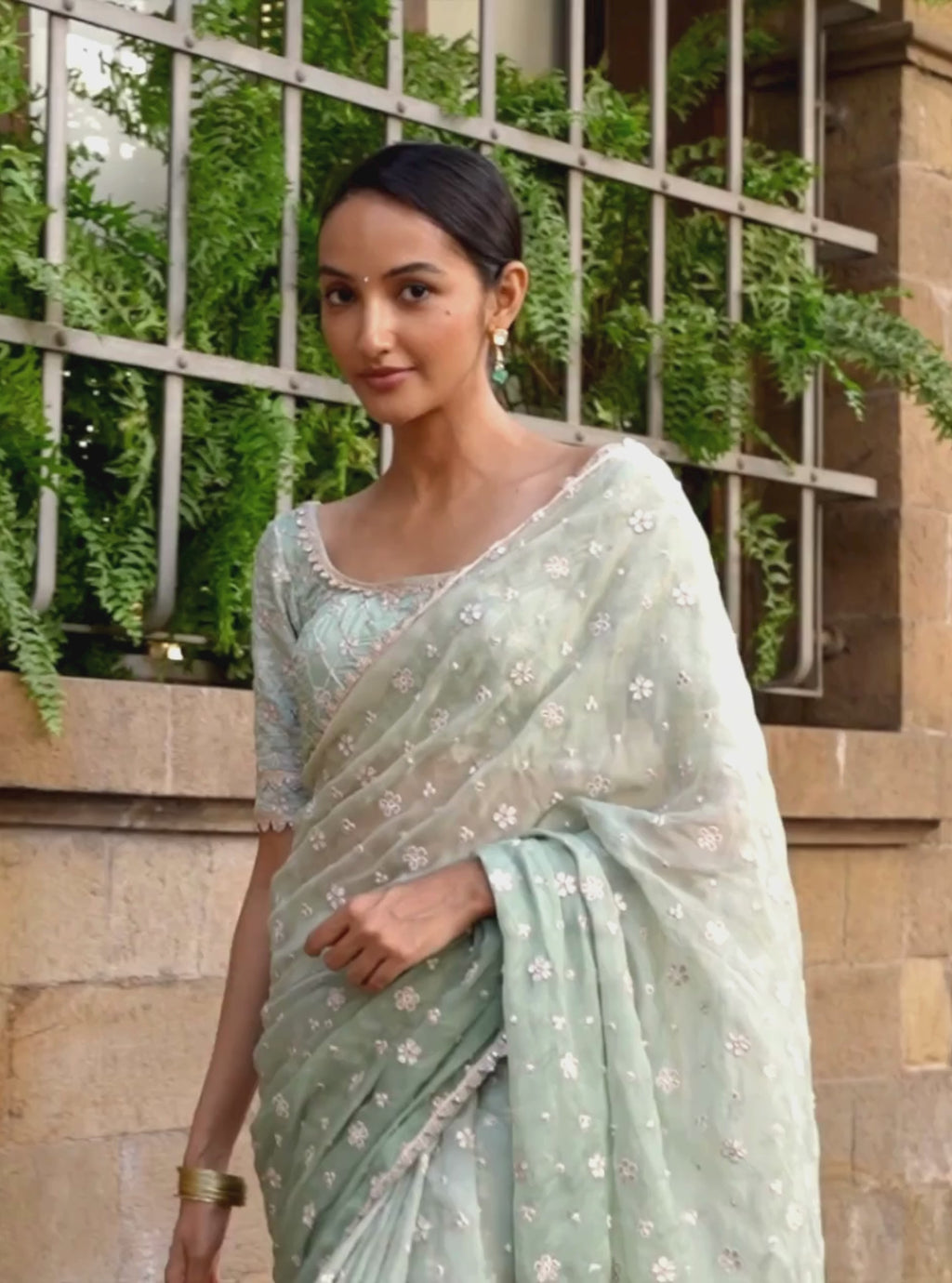 Mulmul Banarsi Luxe Tissue Mangni Light Blue Saree