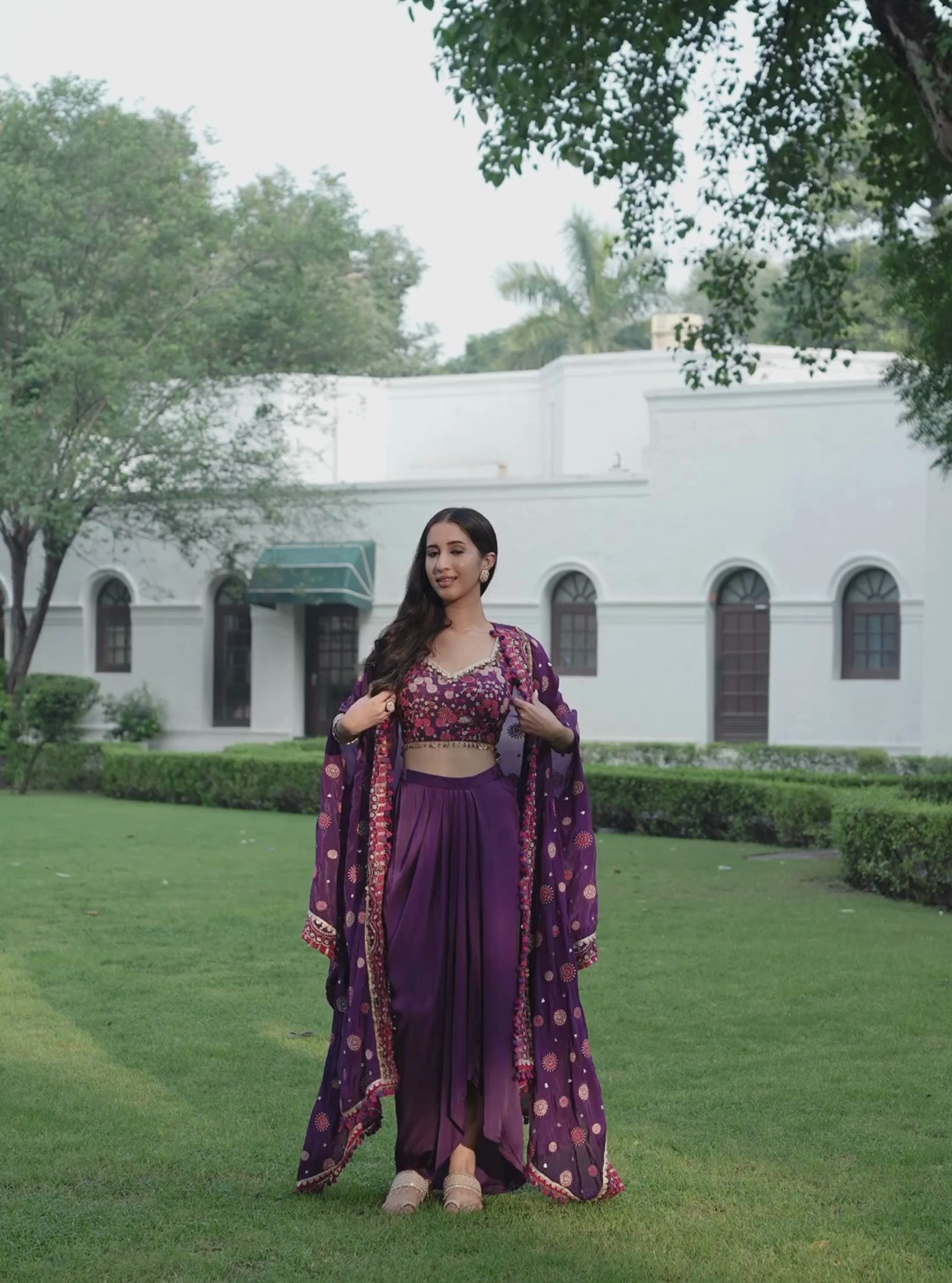 Paakhi Pima Satin Fuschia Jacket With Sharara