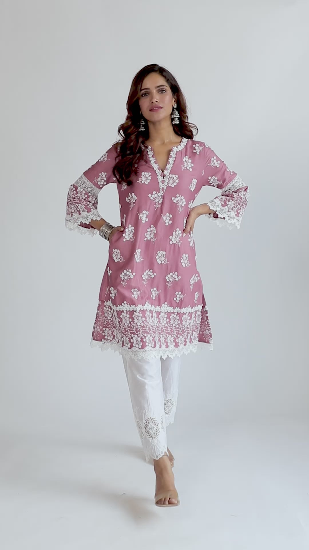 Flared sleeve w delicate embroidery