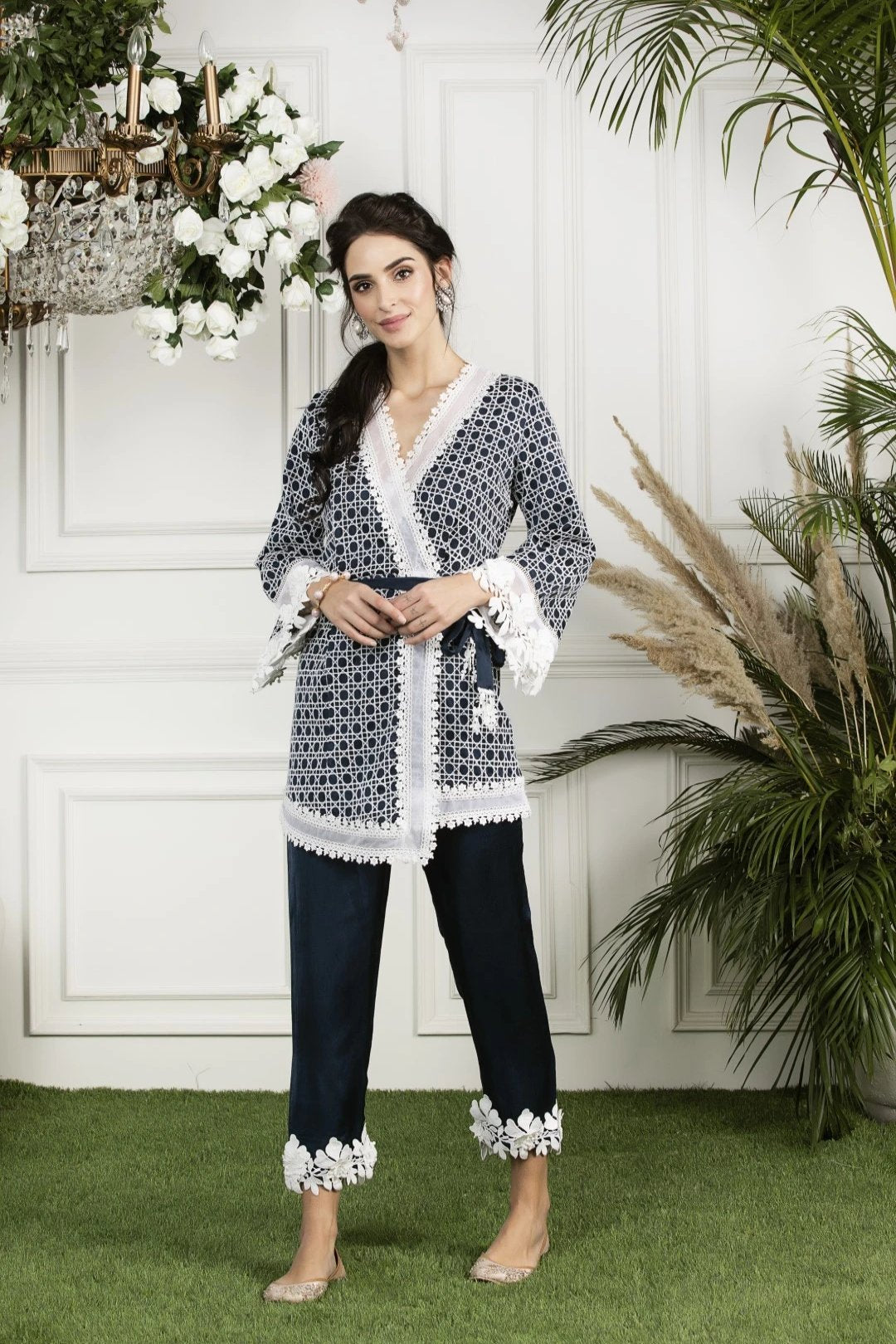 A straight fit pure silk pyajama that is adorned with unique 3-d embroidered flowers that add a charming effect to any kurta