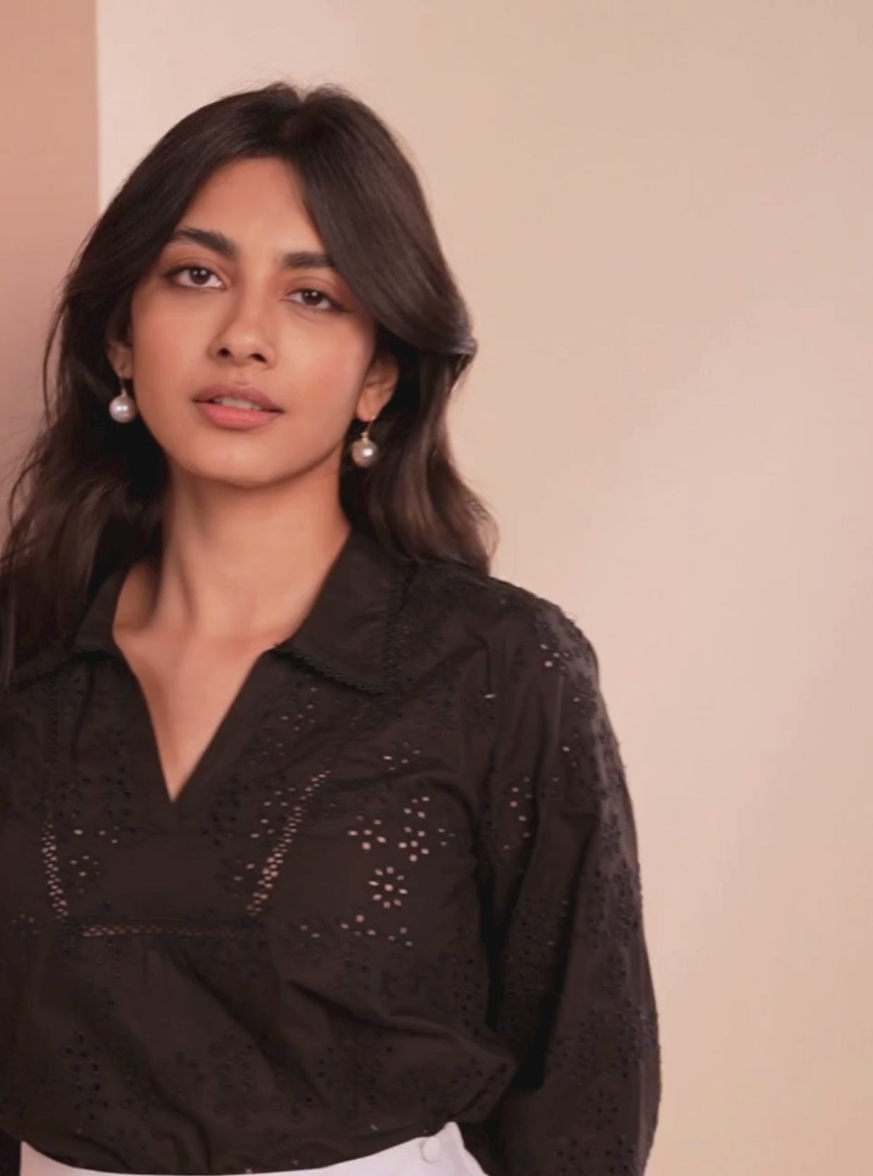 Think vintage chic and this skirt set will tick off all the boxes. The stunningly contrasted black top with the white side-slit skirt is the epitome of all this classy and elegant. Be it a beach-side brunch or a glamorous city outing, this set is your go-to. The whole set features beautiful cut-work details all over, that add a feminine charm. Style it right and you have got yourself an outfit that cannot be faulted.