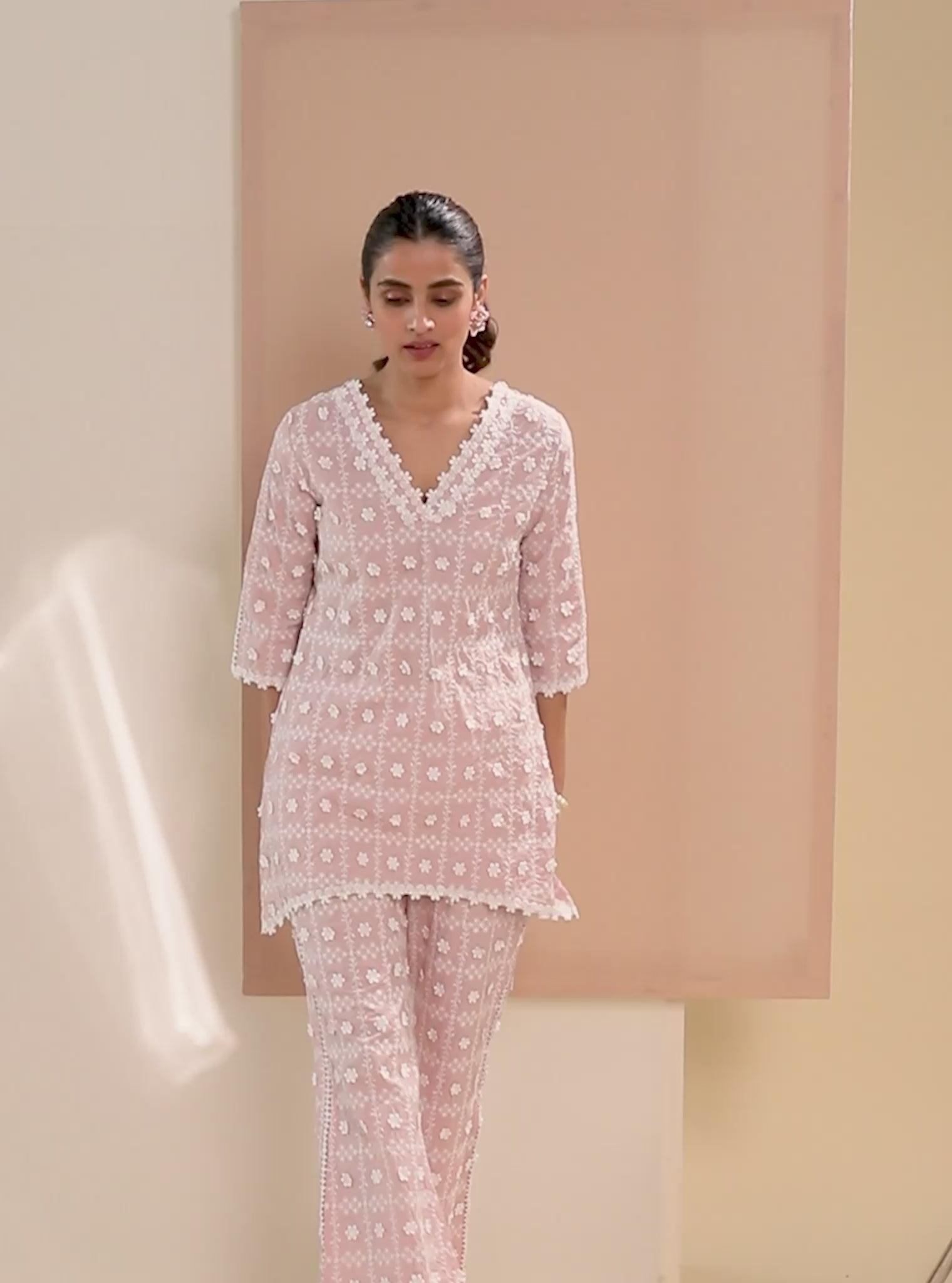 Mulmul Cotton Cove Pink Top With Cove Pink Pant