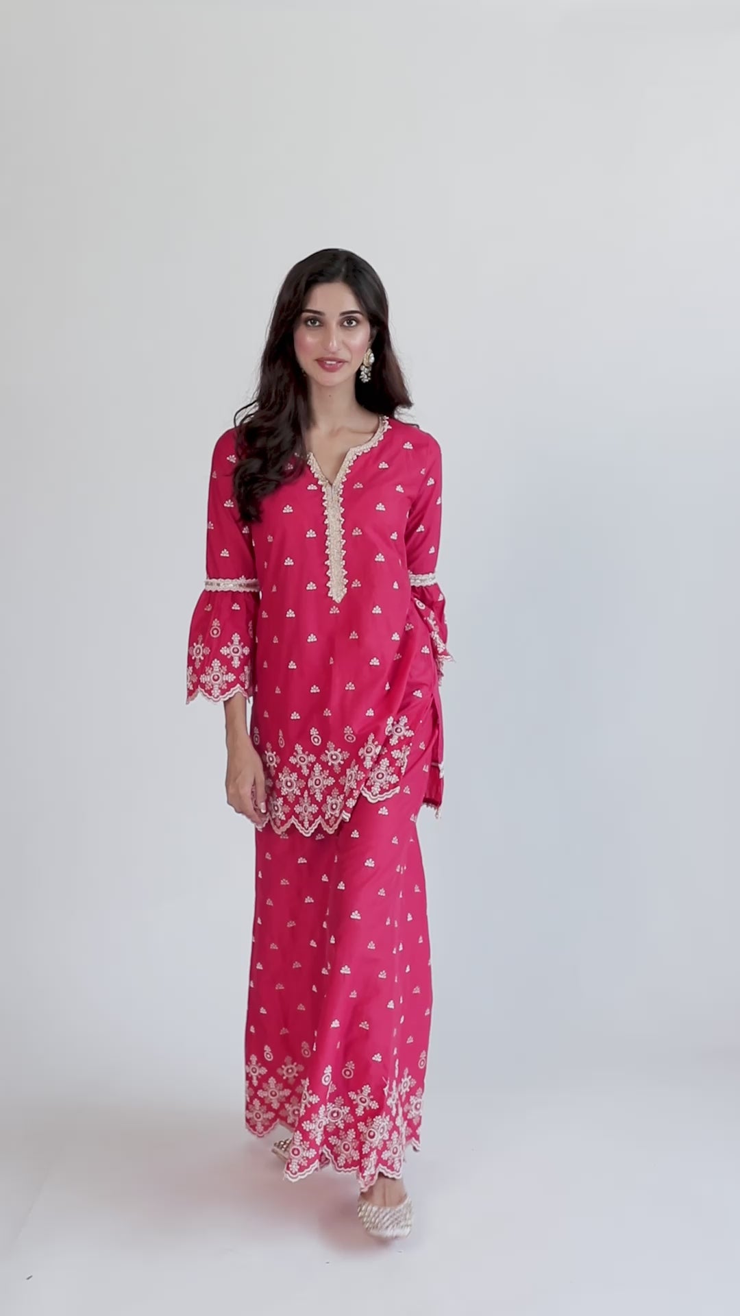 Mulmul Cotton Dove Red Kurta With Dove Red Sharara