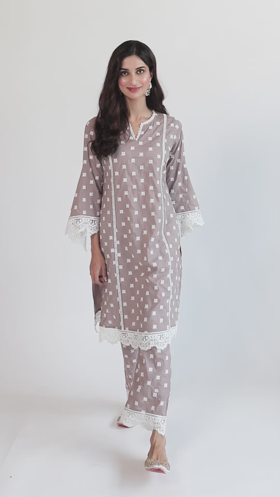 Mulmul Cotton Finch Grey Kurta With Finch Grey Pyajama