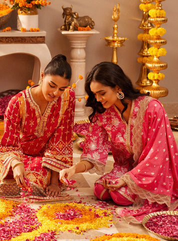 Complementing the kurta is a pair of dhoti-style pants in a matching hue and an artfully embroidered dupatta.