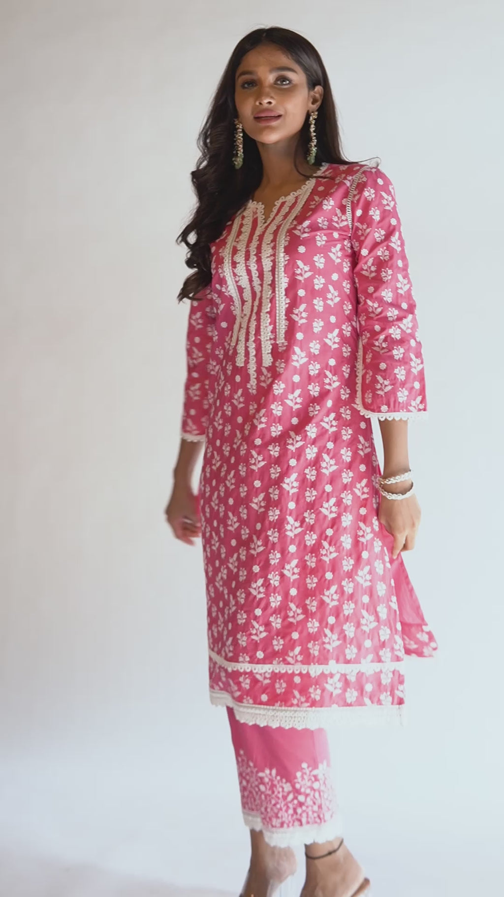 Mulmul Cotton Sierra Fuchsia Kurta With Sierra Fuchsia Pant