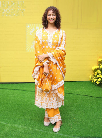 The crowning glory of this set is the exquisite dupatta. Flowing gracefully, it showcases the same elegant hue adorned with delicate white floral motifs. The lace border adds an extra layer of elegance, making this dupatta a versatile piece that can be styled in numerous ways.