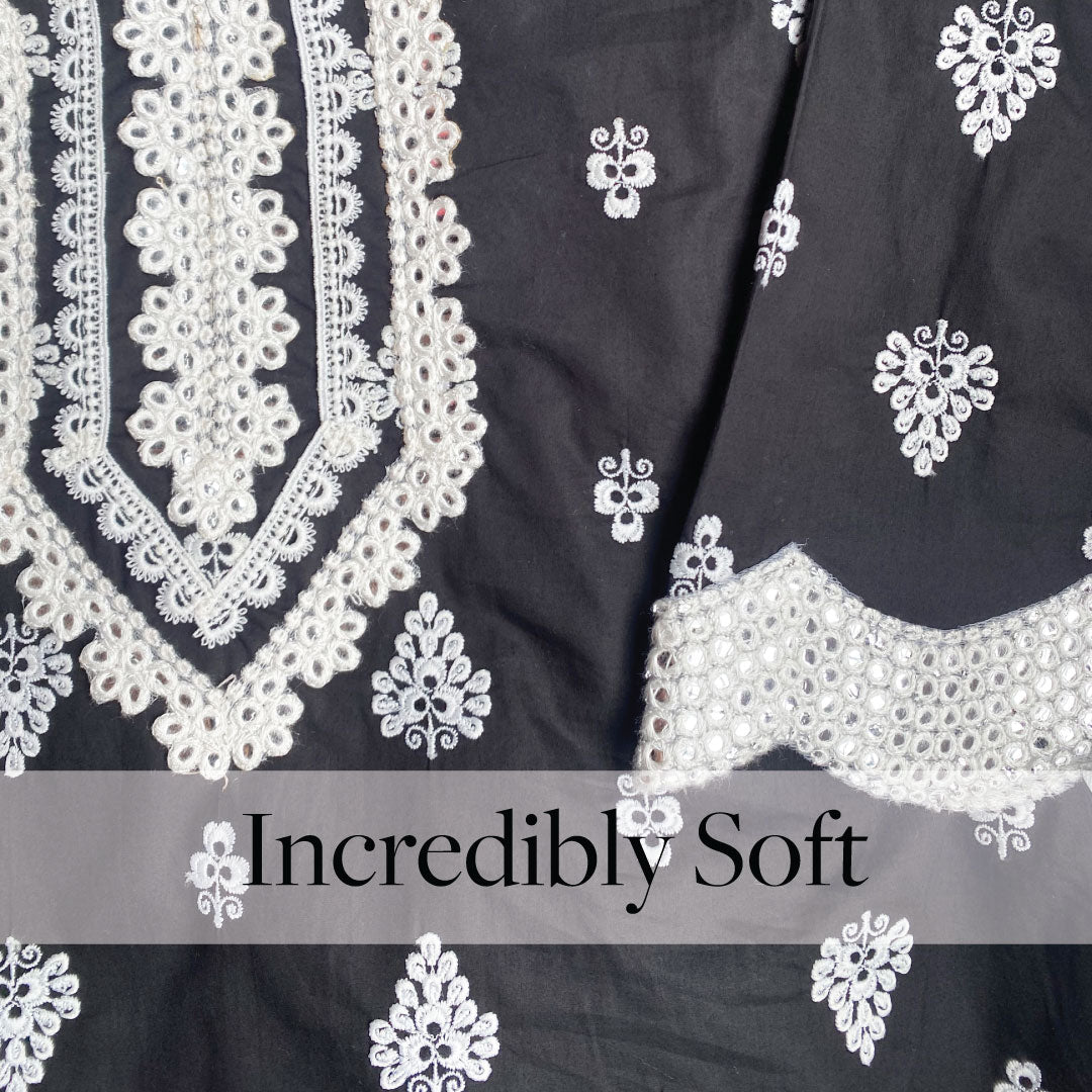 Mulmul Cotton Zoriana Black Kurta With Zoriana Black Sharara