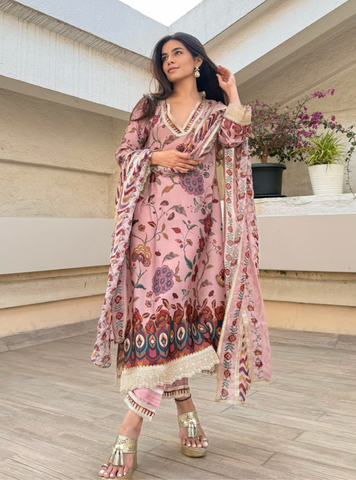 Diantha Cupro Satin Printed Light Pink Kurta Set