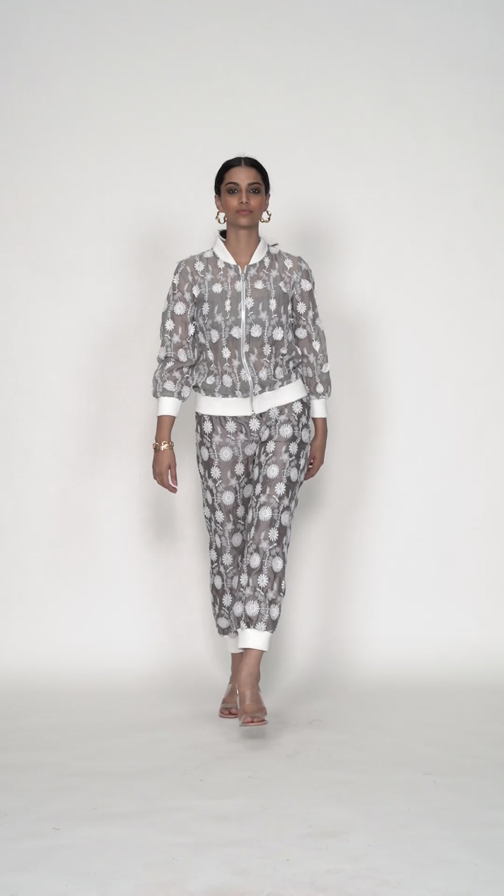 Co-ordinating Cupro silk tracks with fine floral needlework
