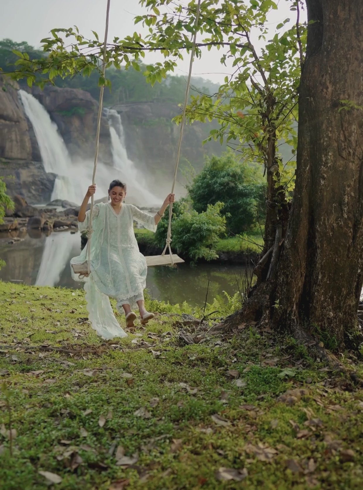 This kurta set is a vision of elegance in a soft, butter yellow hue, adorned with intricate white thread embroidery that captures the essence of timeless grace. The kurta features a V-neckline framed by delicate lace detailing, with embroidered floral motifs all over. The flared sleeves, accentuated with scalloped lace edges and pearl hangings, enhance its ethereal appeal.