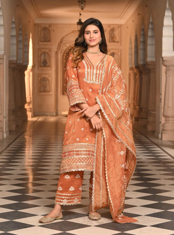 - Delicately scalloped edges on the sleeves, hemline of the kurta, and pants contribute to the ensemble's refined appeal.