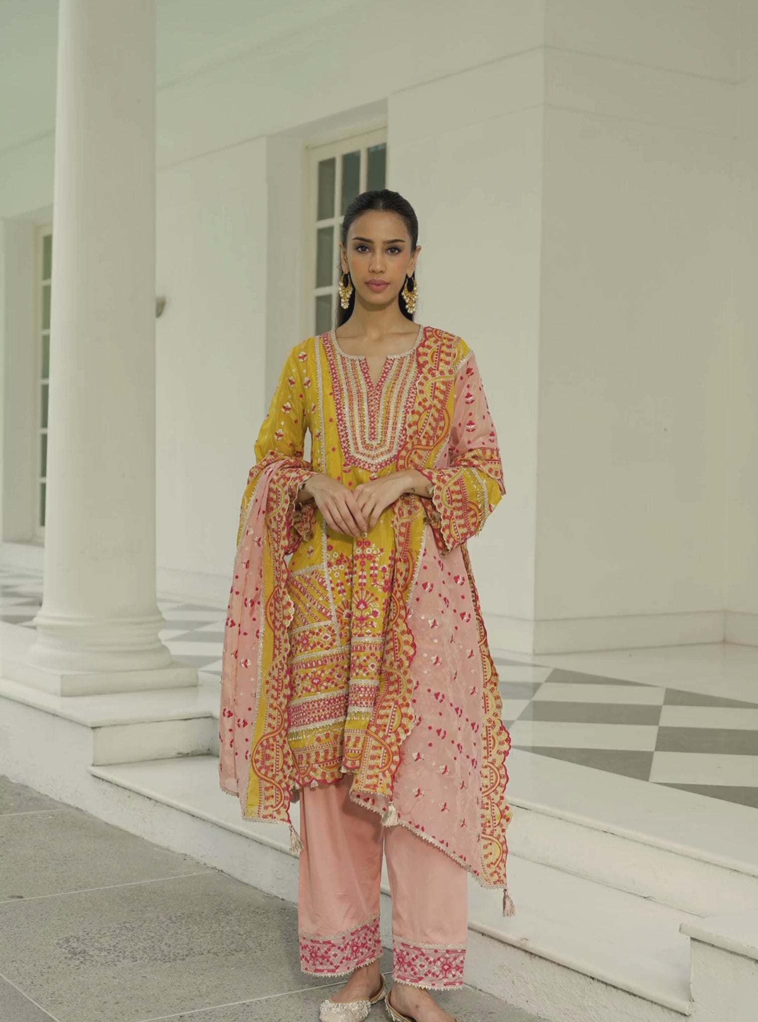 Leher Viscose Glass Organza Luxe Mustard Kurta Set