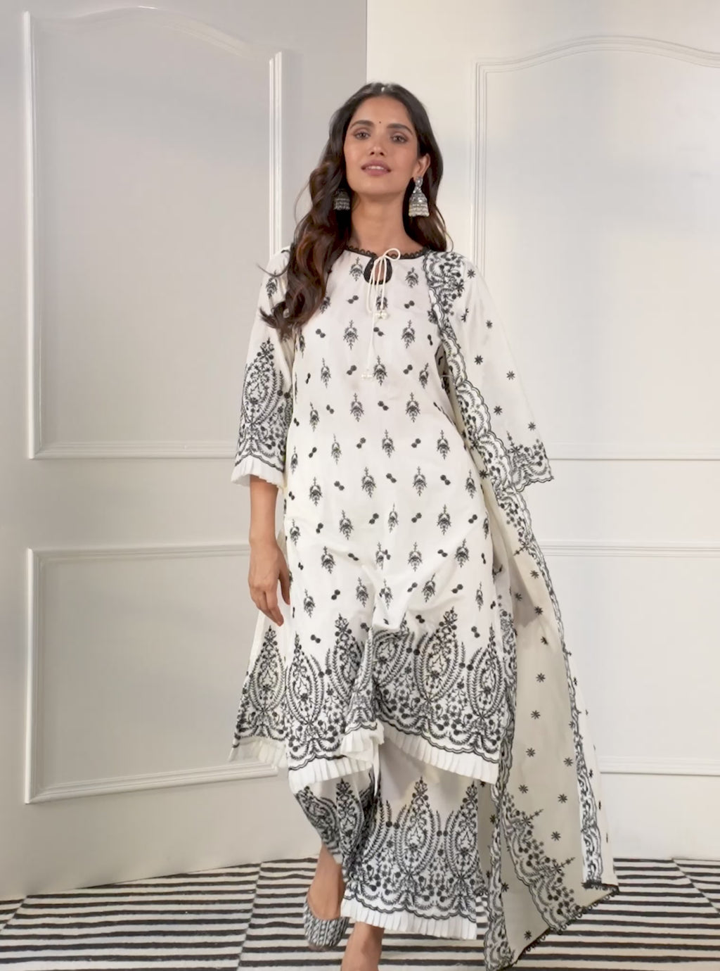 Asteria Supima Cotton Off White Kurta with Palazzo Set