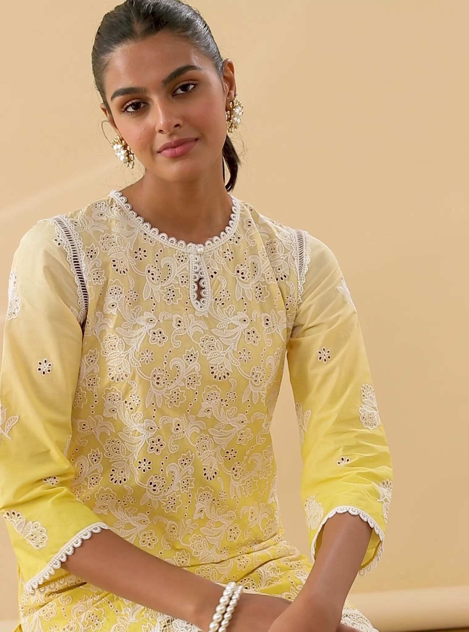 Tista Supima Cotton Yellow Kurta with Palazzo Set