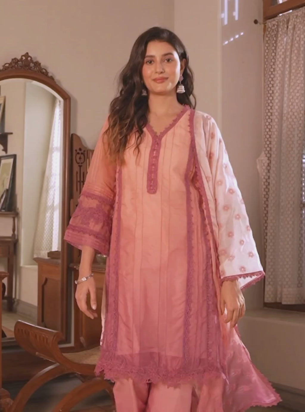 Valerie Tencel Luxe Organza Pink Kurta Set