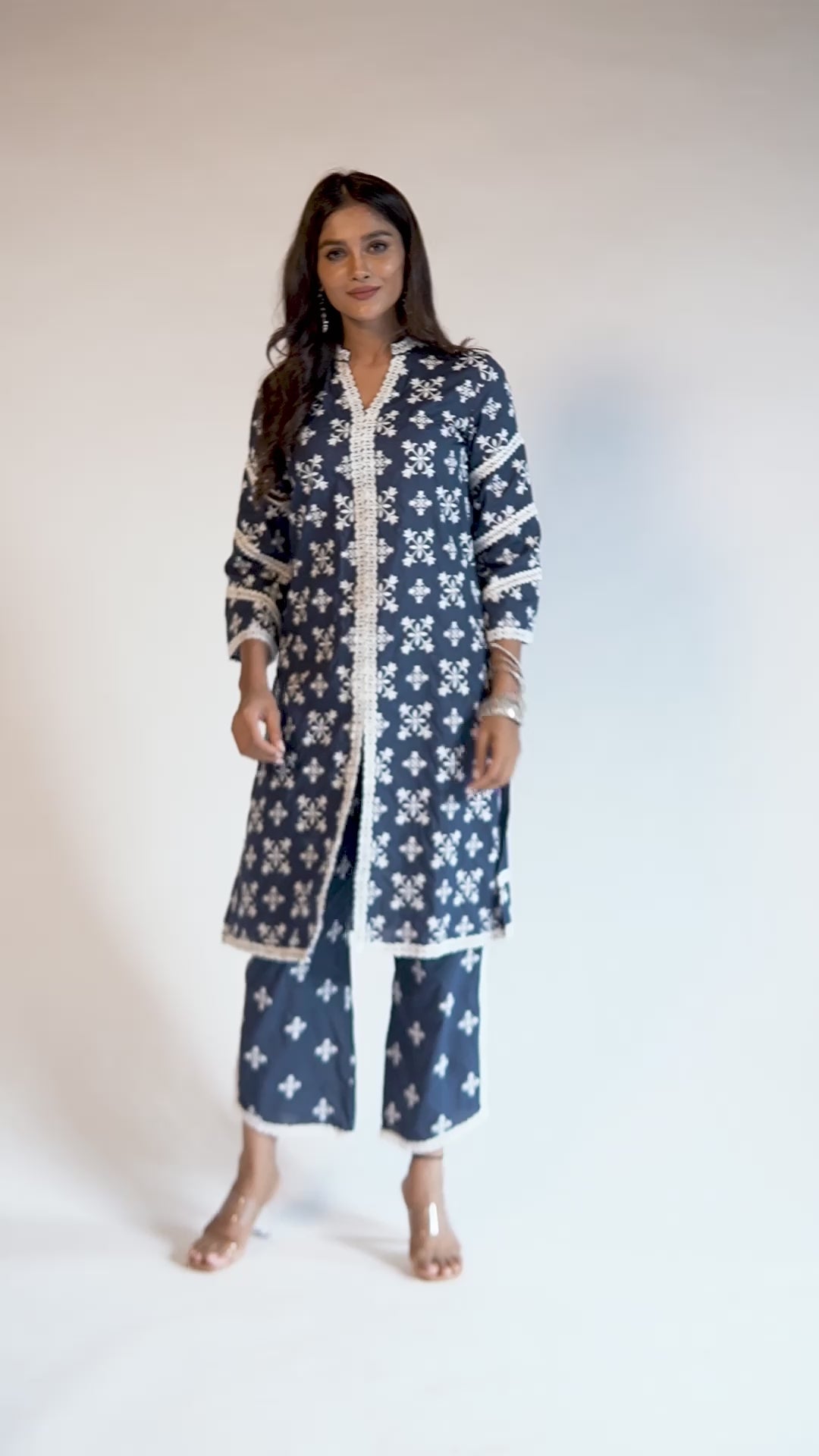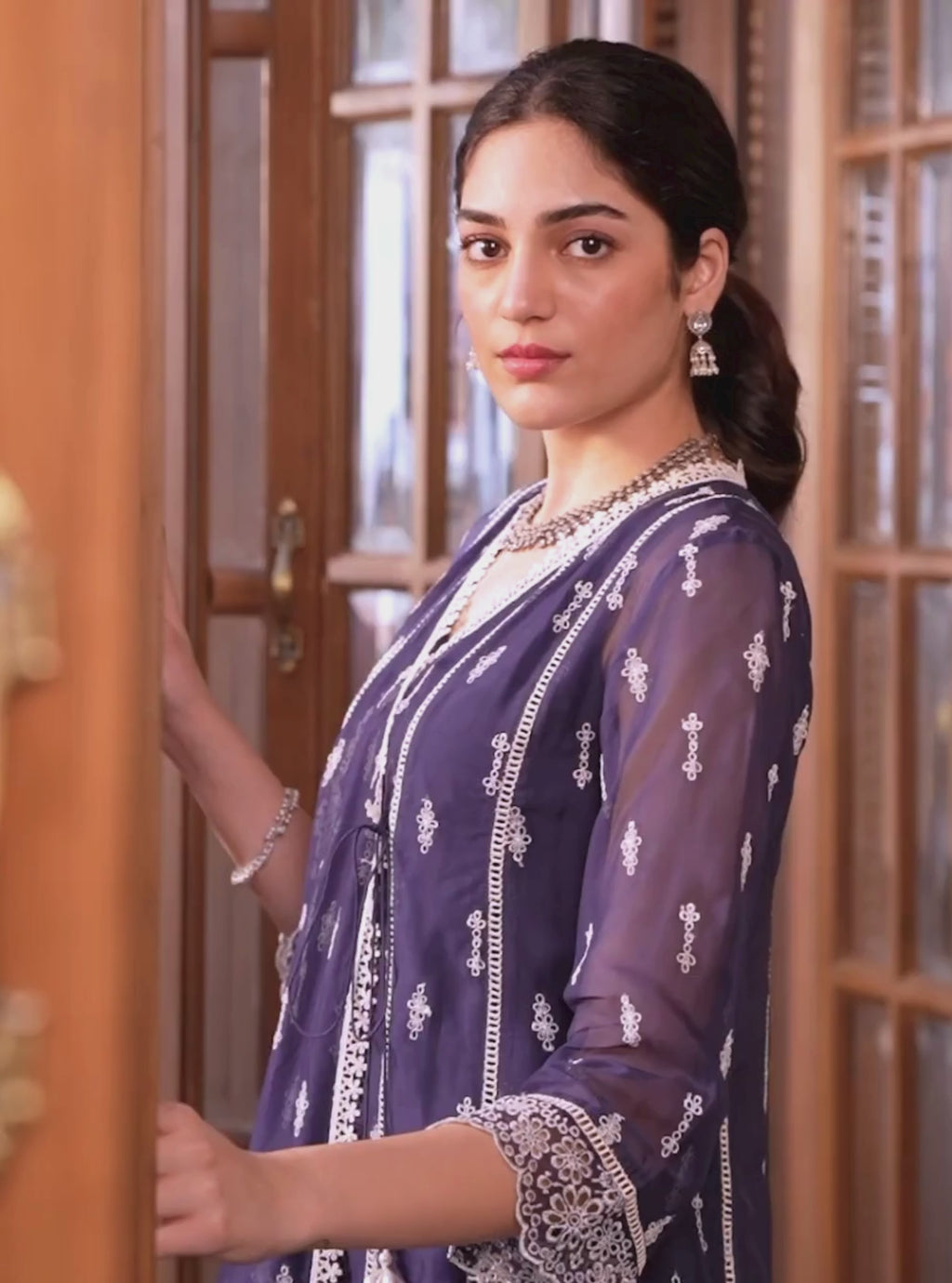 Vanessa Banarsi Blue Anarkali Kurta Set