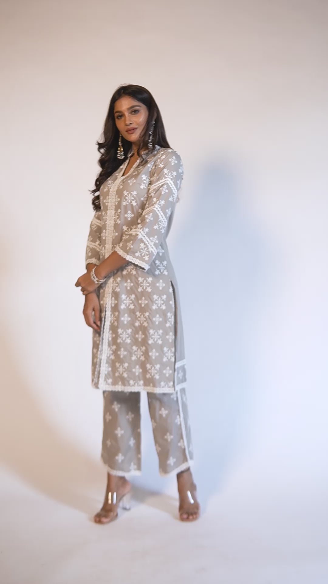 Valerie Tencel Luxe Organza Beige Kurta Set